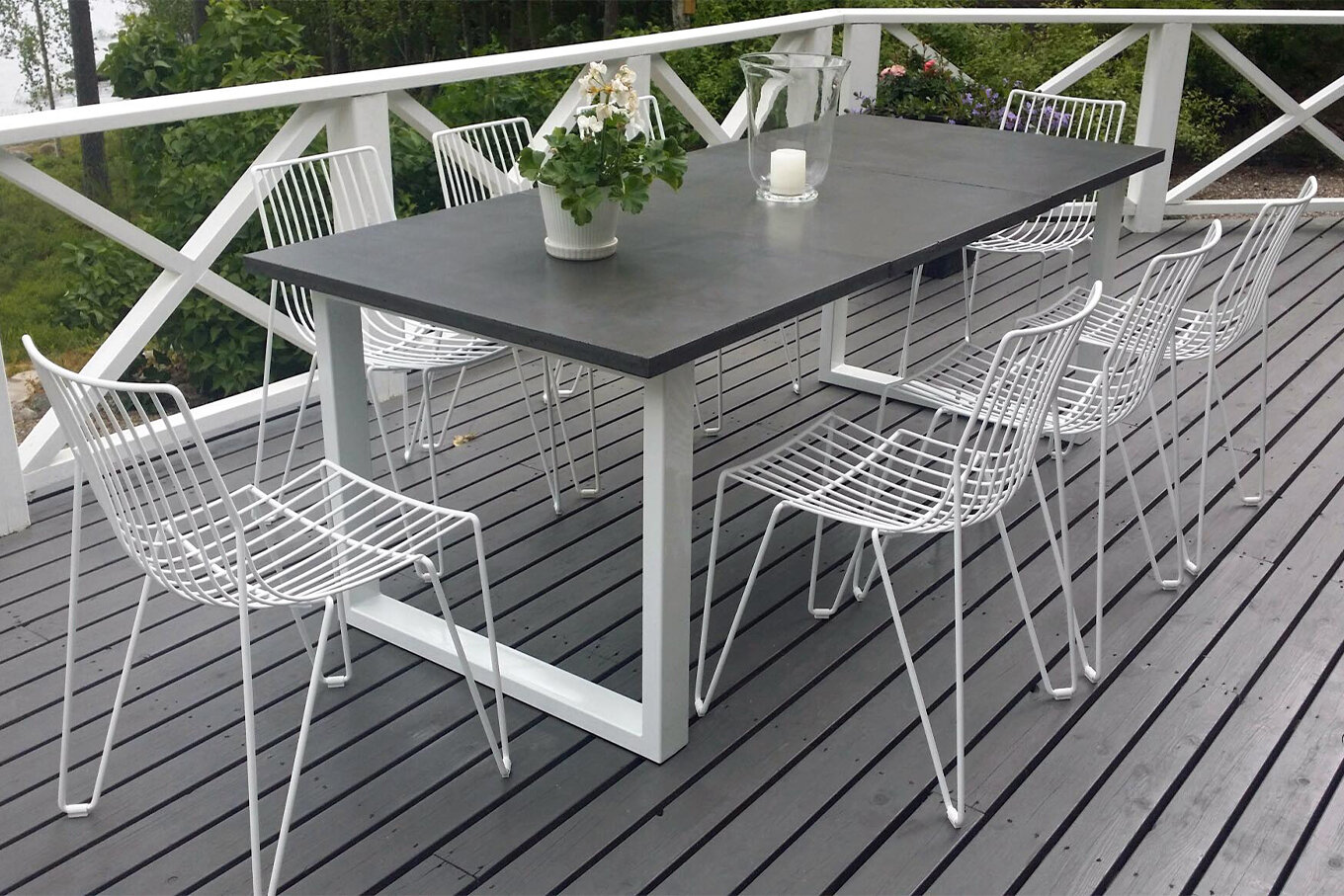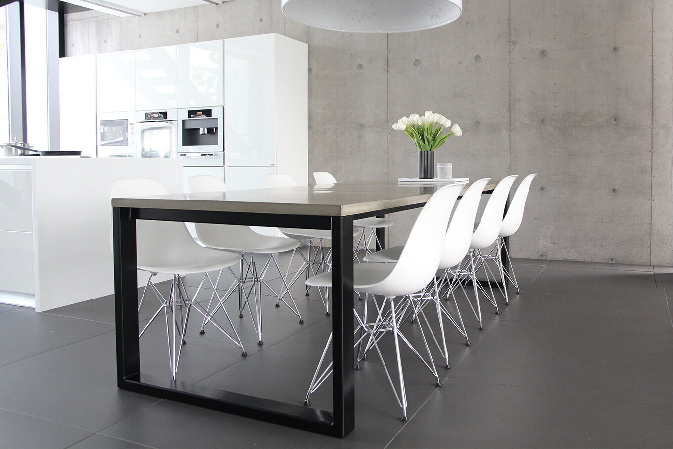 Pöydän kansi on valmistettu käsityönä betonista joka on hiottu todella tasaiseksi jonka lisäksi käsitelty likaa hylkiväksi. Kansi valetaan aina asiakkaan omien mittojen mukaan, joka mahdollistaa pöydän valmistuksen täysin mittatilauksena. Betoni seos on 16JUINin omalla reseptillä valmistettu jonka ansiosta se on taipuisampaa ja kestää näin ollen paremmin iskuja.