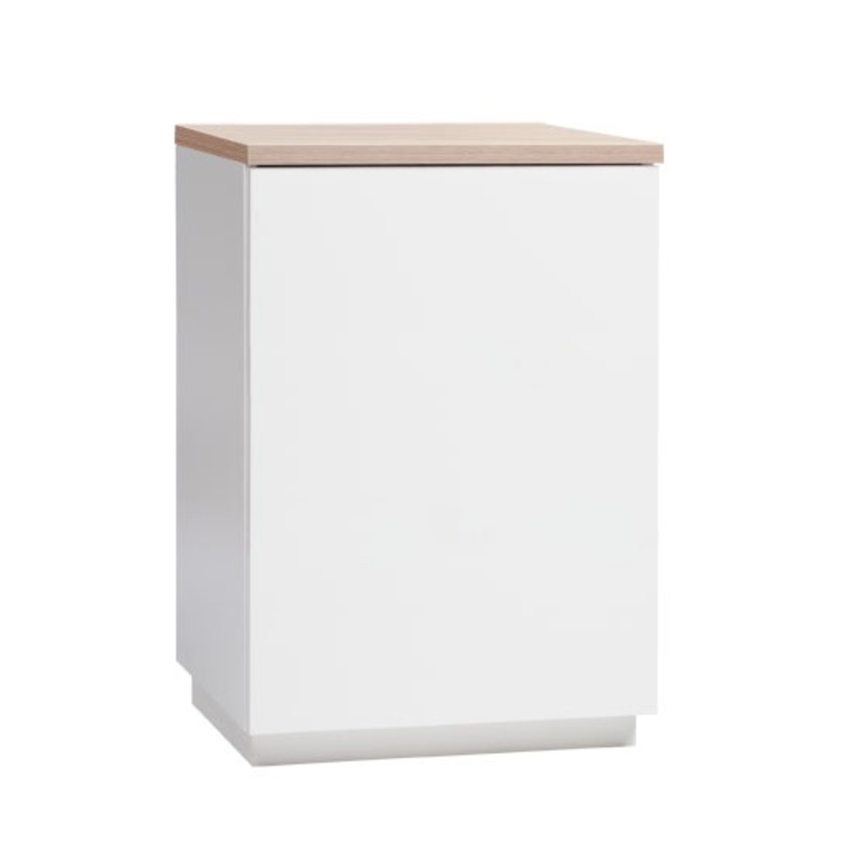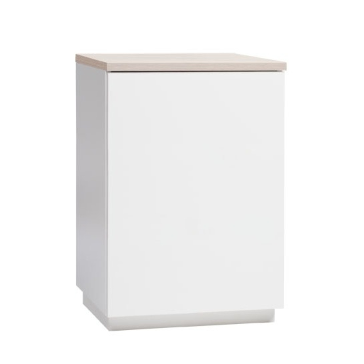 Lipasto ovella, joka aukeeaa laadukkaalla push-open mekanismilla. Sisällä kaksi hyllyä.