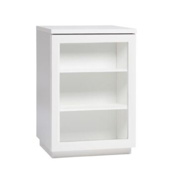 Lipasto ovella, joka aukeeaa laadukkaalla push-open mekanismilla. Sisällä kaksi hyllyä.