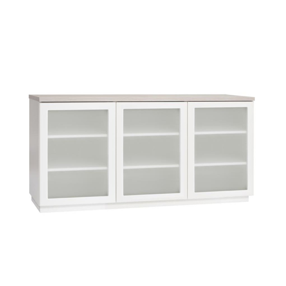 Senkki maitolasiovilla, jotka aukevat laadukkailla push open mekanismeilla. Sisällä kuusi hyllyä.