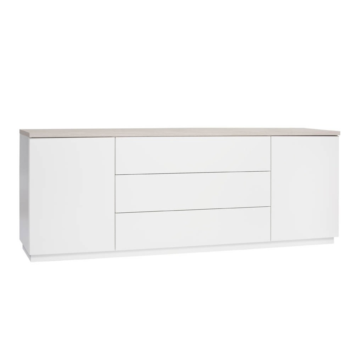 Materiaali: Runko, sokkeli ja kansi MFC-kalustelevyä, joka on ympäristöystävällinen materiaali ja jonka kulutuksenkesto ja värinpitävyys ovat erinomaiset. Laatikot ja ovet valkoiseksi maalattua MDF -levyä.