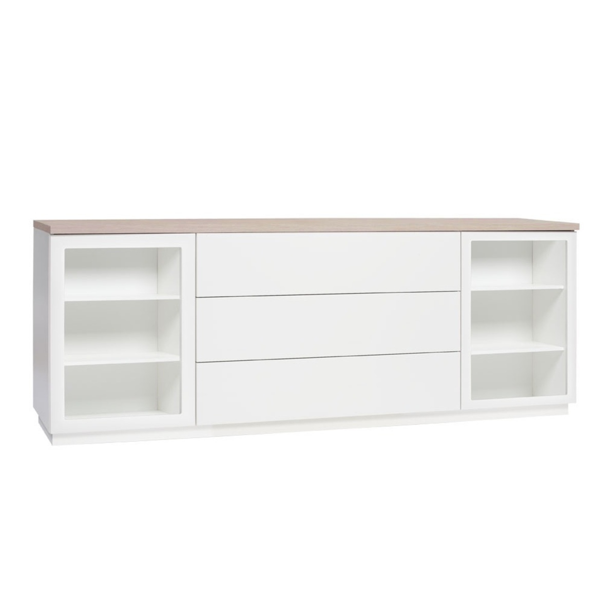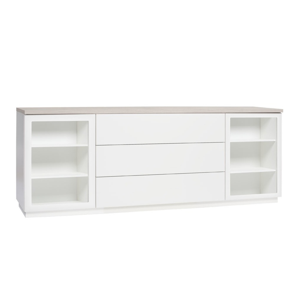 Senkki kahdella lasiovella ja laatikoilla, jotka aukeavat laadukkailla push open mekanismeilla. Sisällä neljä hyllyä.