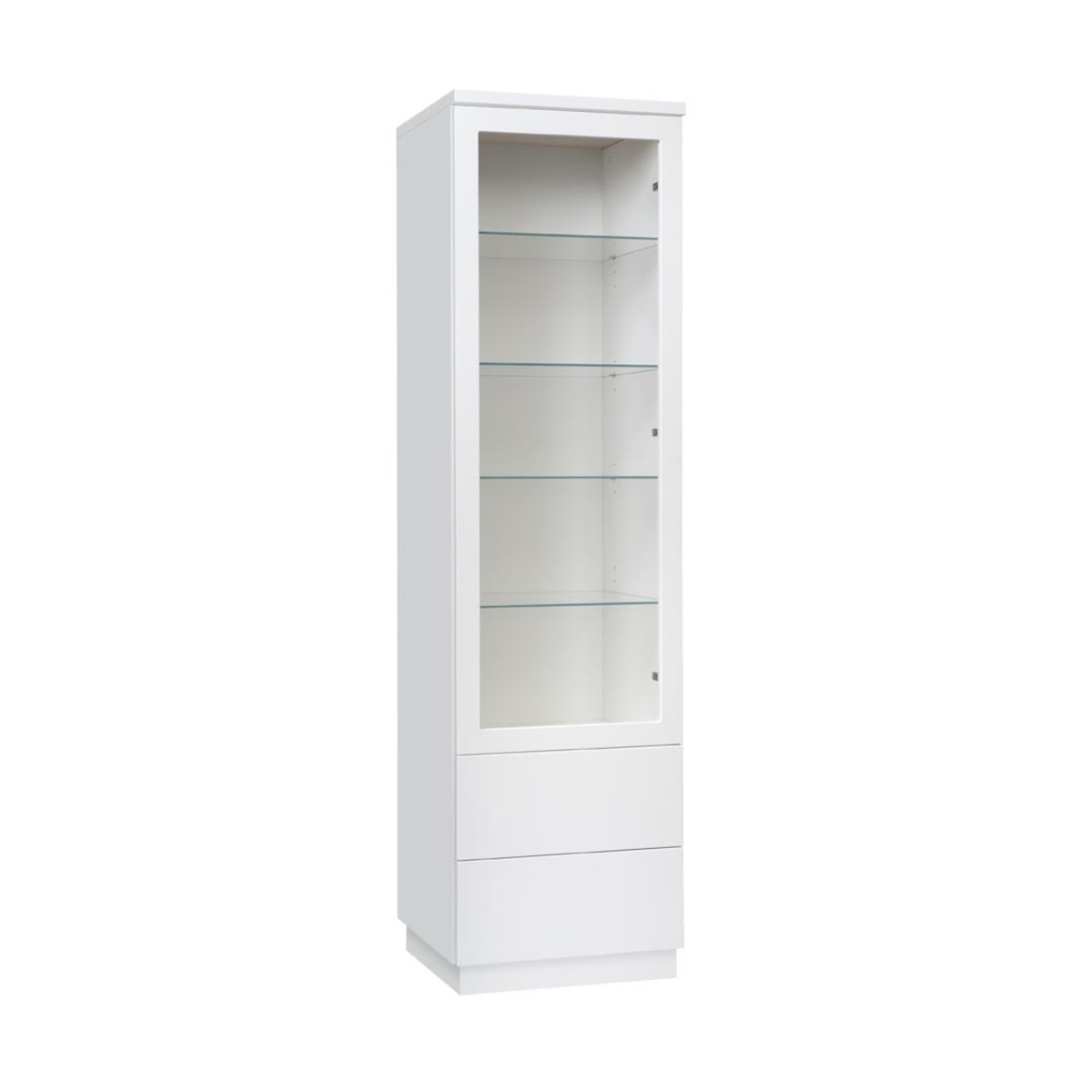 vitriini kahdella laatikolla ja lasiovella, jotka aukeavat laadukkailla push open mekanismeilla. Lasihyllyt.