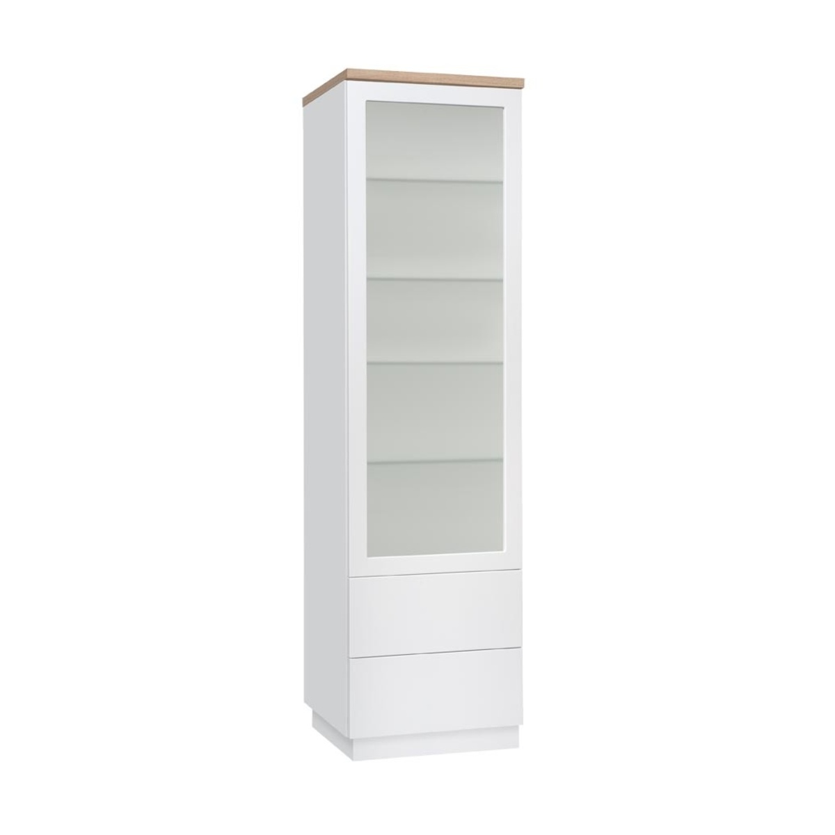 vitriini kahdella laatikolla ja maitolasiovella, jotka aukeavat laadukkailla push open mekanismeilla. Lasihyllyt.
