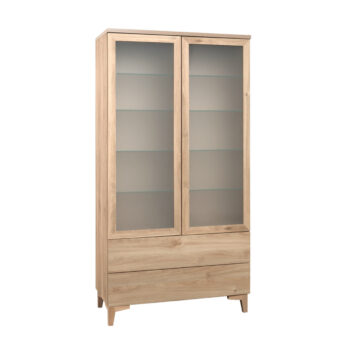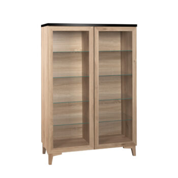 Tyylikäs metallinen korkea Carbon-vitriini, jonka yläovissa on karkaistut huurre-aaltolasit.