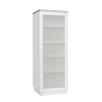 Tyylikäs metallinen korkea Carbon-vitriini, jonka yläovissa on karkaistut huurre-aaltolasit. Vitriinin sisällä on kolme säädettävää välihyllyä, joiden leveys on 79,6 cm ja syvyys 30 cm. Hyllyn kantavuus on 15 kg. Vitriinissä on myös säädettävät 18 cm korkeat jalat. Vitriinin leveys on 80 cm, syvyys 35 cm ja korkeus 180 cm. Toimitus osina.