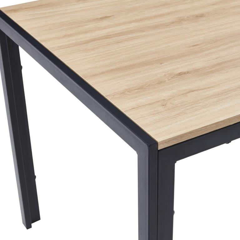 Siro Claudia pöytä neljälle tuolille. Tammenvärinen kansi yhdistettynä mustiin metallijalkoihin takaa näyttävän kokonaisuuden.