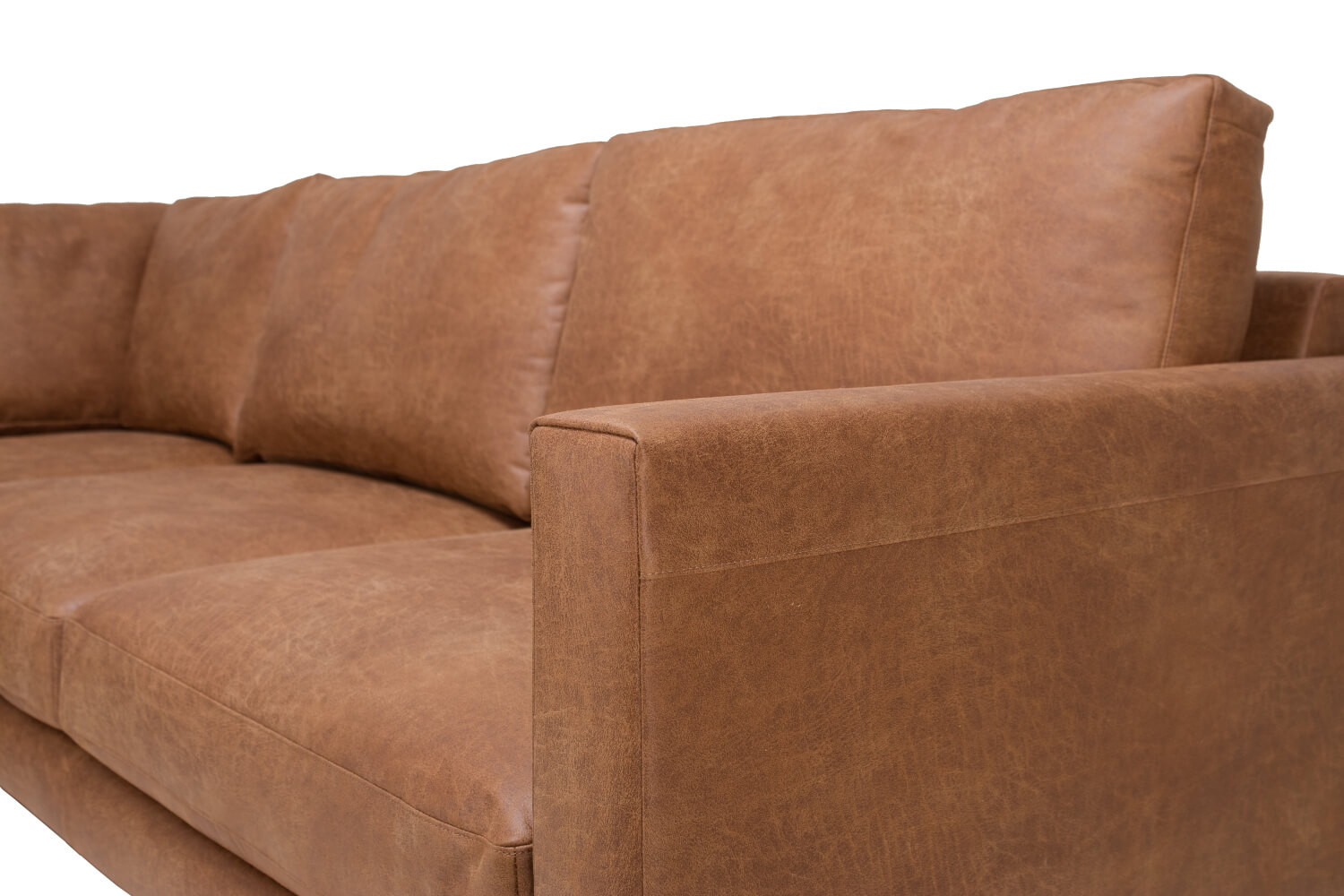 Copenhagen avokulmasohva on tyylikäs ja trendikäs valinta, joka tarjoaa erinomaista istuinmukavuutta. Verhoiltu laadukkaalla Colorado-nahalla, joka on 70% nahkaa ja 30% keinokuitua, tämä sohva yhdistää ylellisyyden ja kestävyyden.