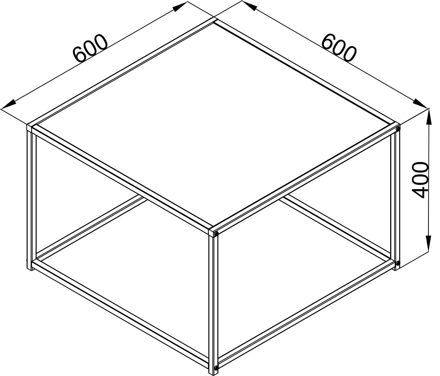Siro ja tyylikäs Dawson-sohvapöytä, jossa on pulverimaalattu musta metallirunko ja tammen värinen pinnoitettu mdf-kansi. Pöydän leveys on 60 cm, syvyys 60 cm ja korkeus 40 cm. Pöydän kantavuus on 20 kg. Toimitus osina.