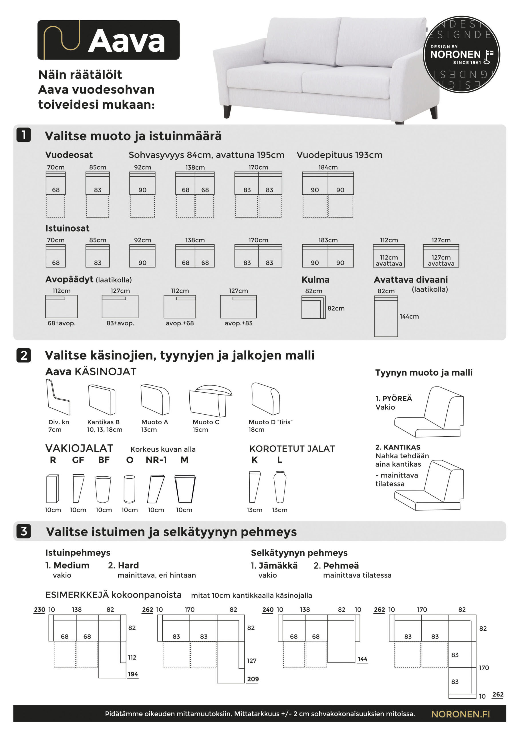Aava on moduuleista rakentuva vuodesohva. Sohvan ulkonäköön pääset vaikuttamaan verhoiluilla, käsinojilla, tyynyillä ja jaloilla.