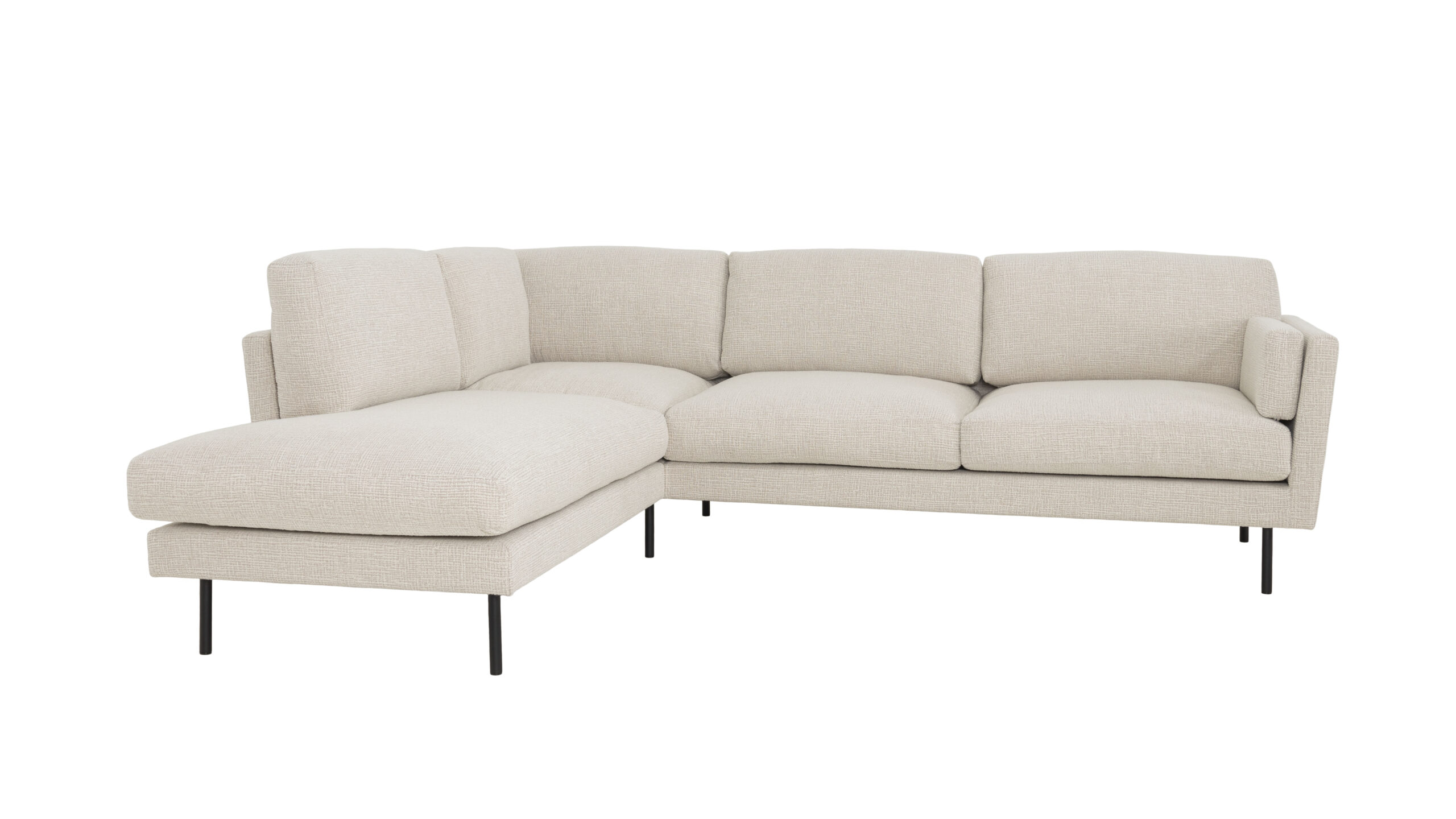 Kevyt linjainen Skandi moduulisohva. Kuvan kokonaisuus alkaen HR.2 kankailla.
