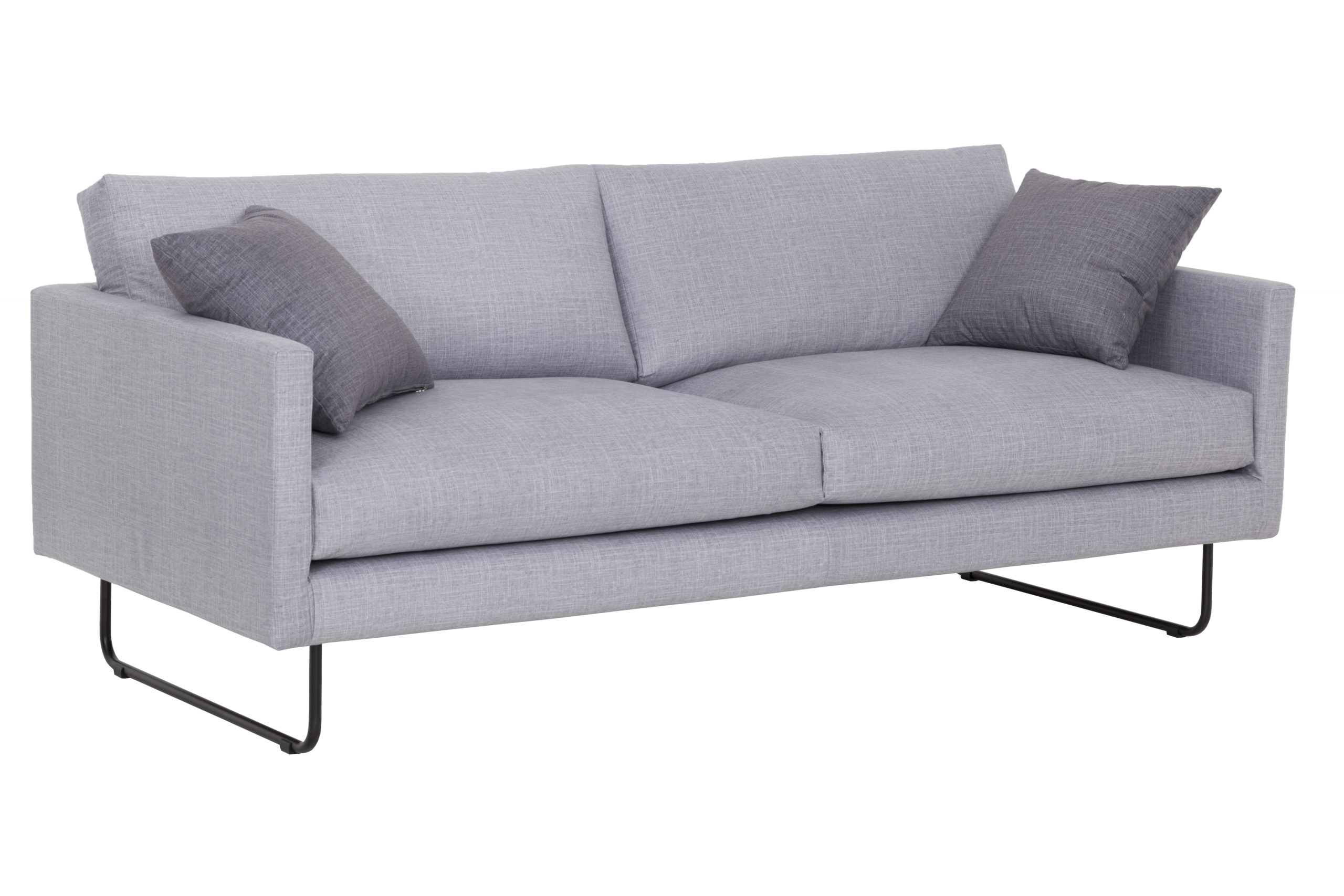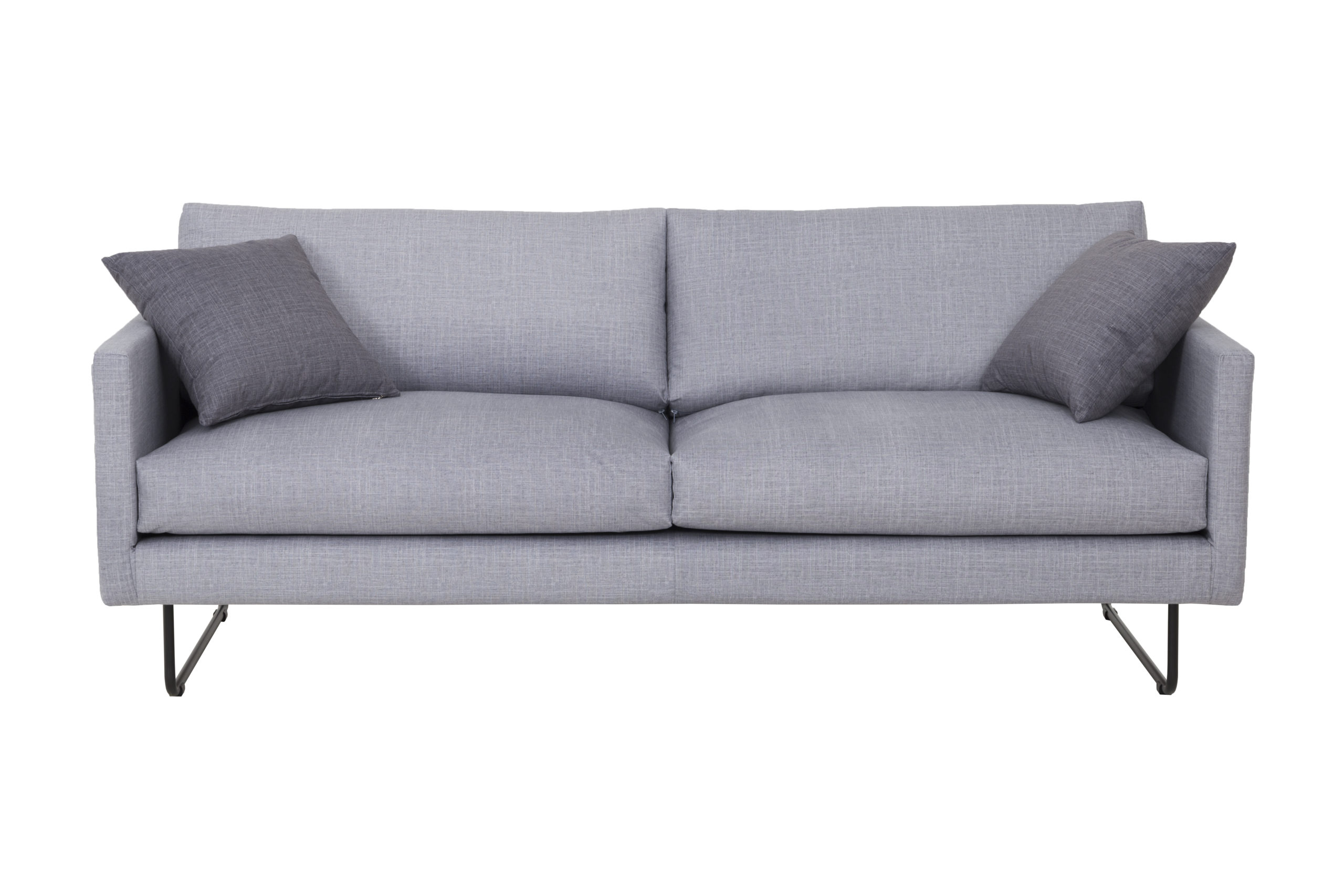 Kotimainen siro Slim sohva, kestävällä Page kankaalla tai miellyttävän sileällä ja likaahylkivällä Seven kankaalla.