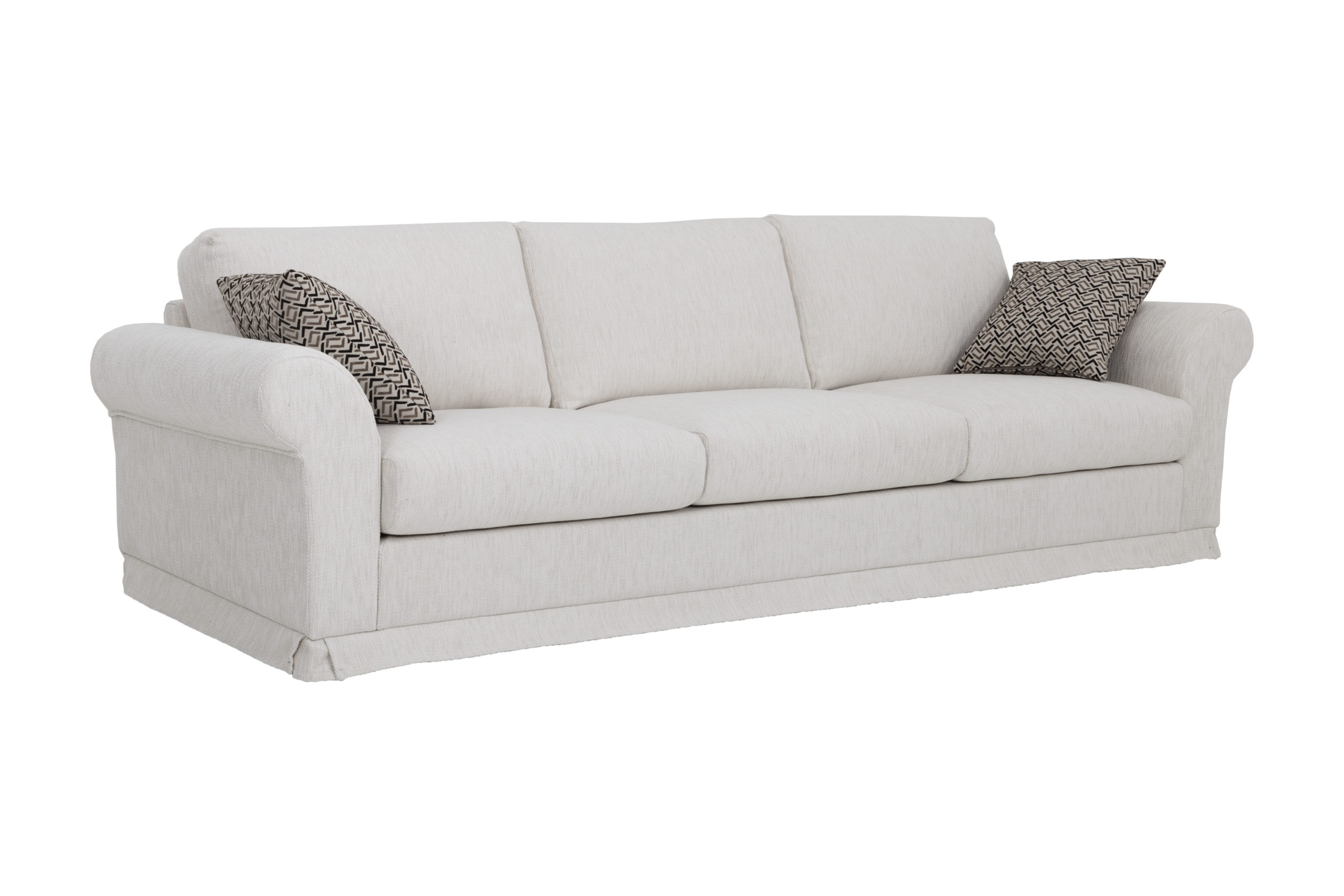 Laadukas kotimainen Sopiwa sohva englantilaistyylisellä käsinojalla ja helmalakanalla.