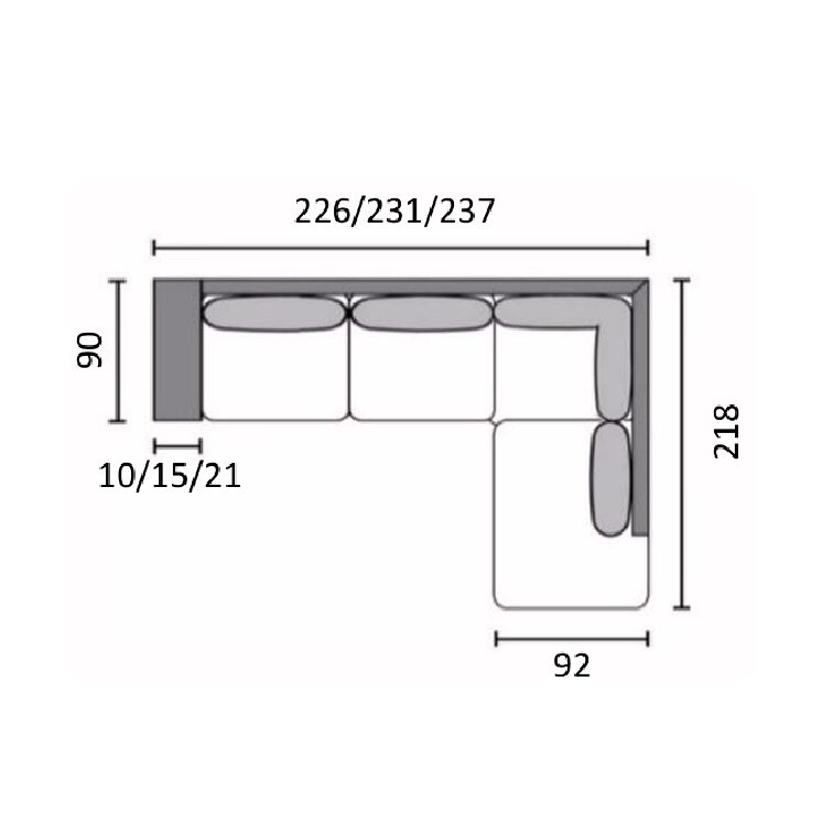 • Kokonaisleveys 226/231/237 cm