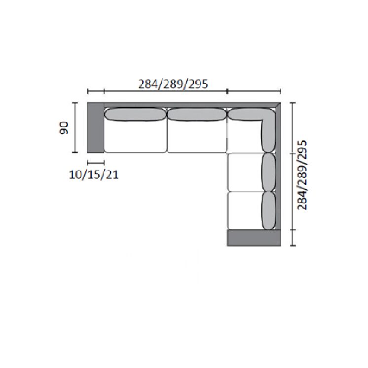 • Kokonaissyvyys 284/289/295 cm