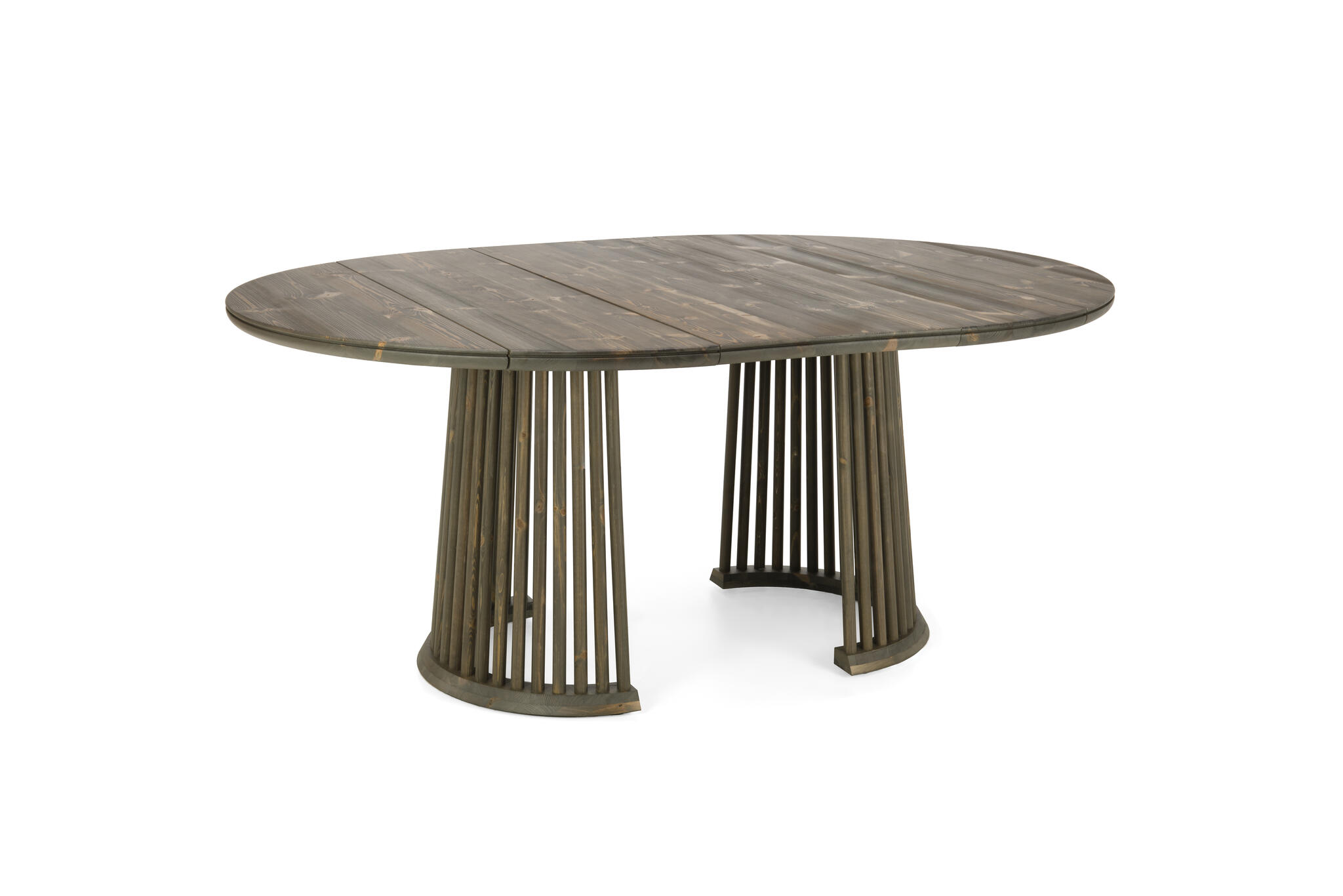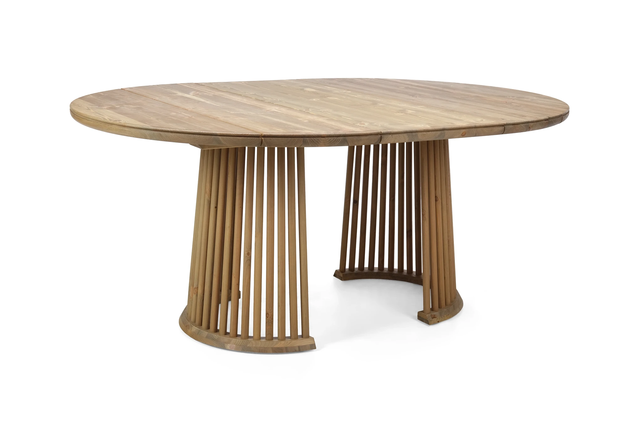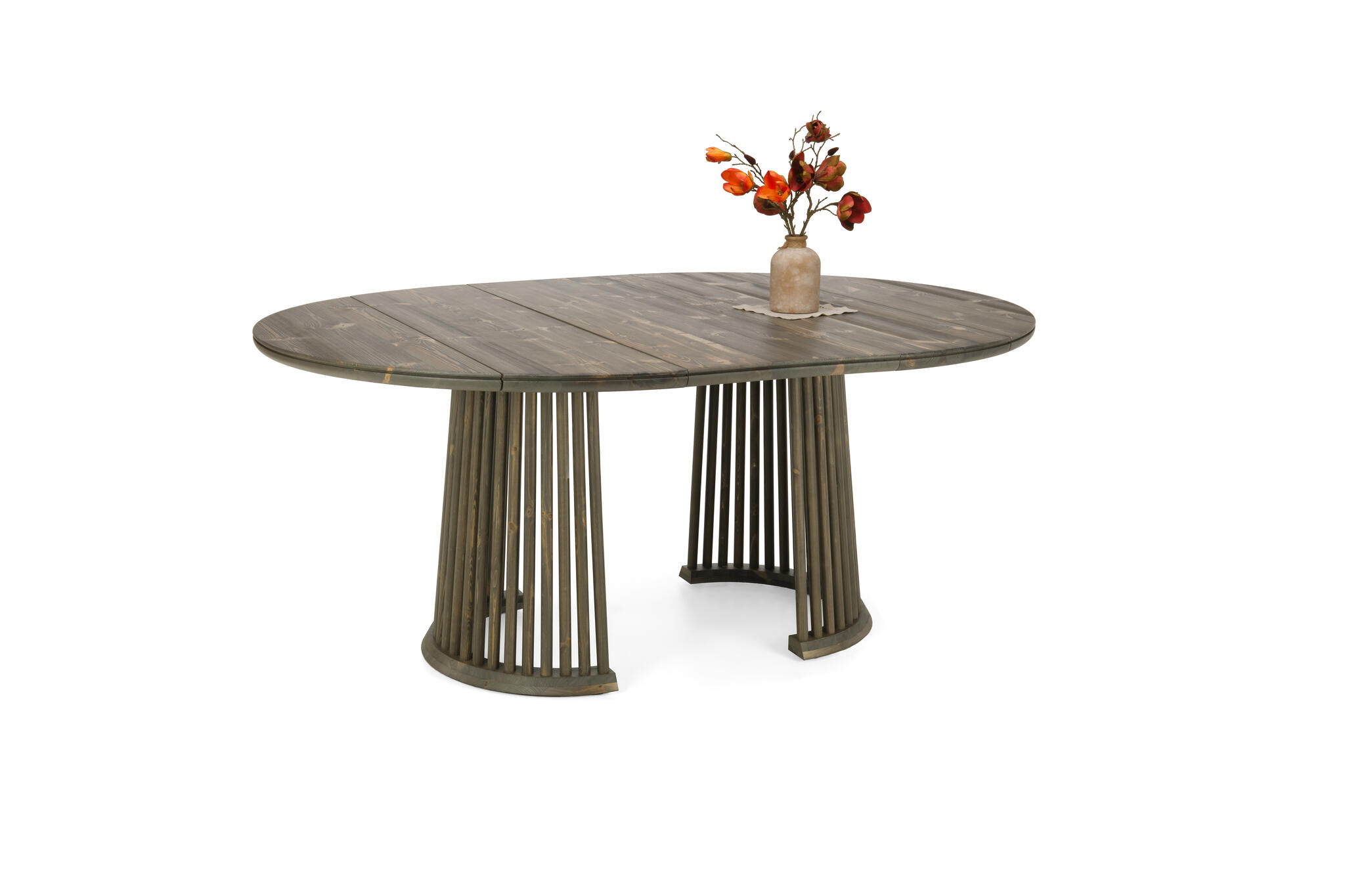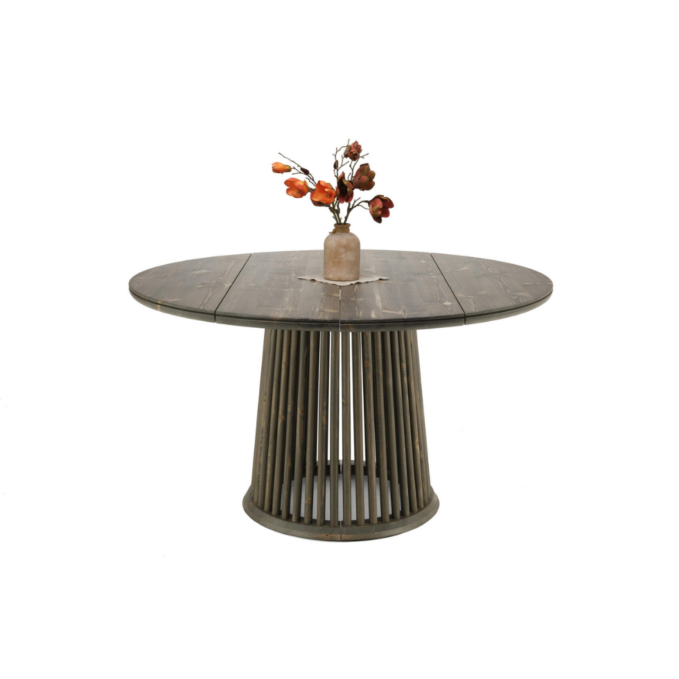 Pöytä toimitetaan kahdessa osassa: kansi ja jalkaosa erikseen. Jalat ovat valmiiksi kasattuina. Jatkopala asetetaan pöydän keskelle, jolloin pöytään mahtuu helposti isompikin seurue.