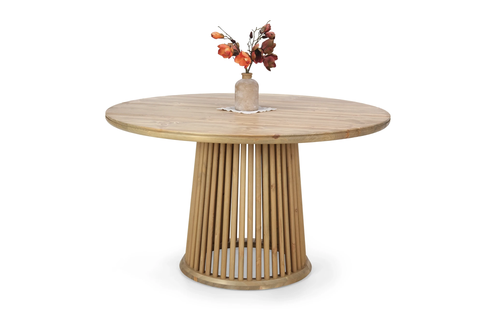 Elina on näyttävä, rustiikkinen ruokapöytä, joka sopii niin sisä- kuin katettuihin ulkotiloihin. Kaunis mäntykansi korostaa puun luonnollisia syykuvioita, ja pyöristetyt reunat tuovat pehmeyttä sen vahvaan ilmeeseen.