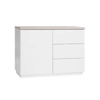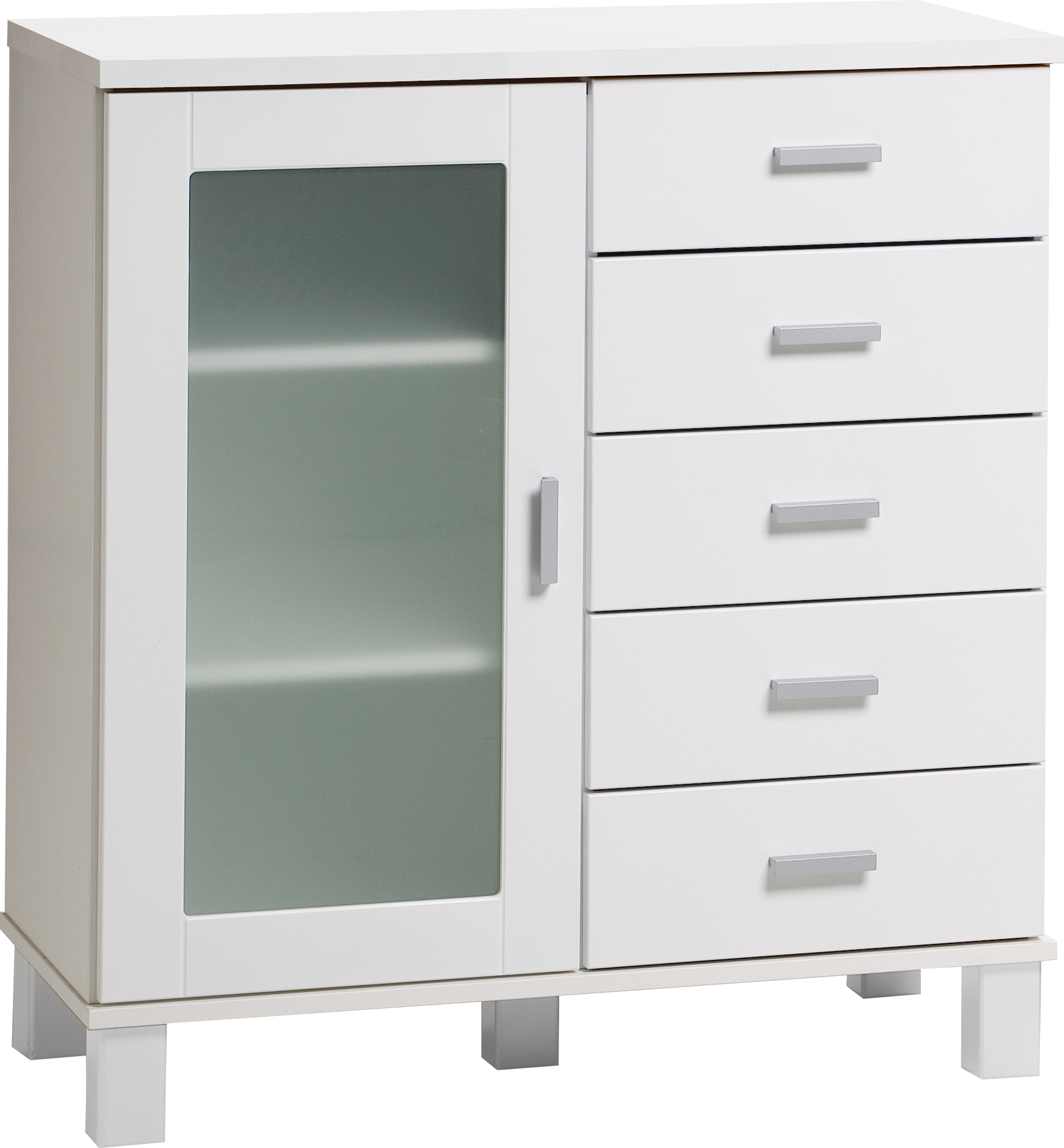 Korkeampi Fondi lasiovilipasto tarjoaa näyttävän ja käytännöllisen säilytysratkaisun moneen tilaan. Yksinkertainen ja ajaton muotoilu sopii erinomaisesti skandinaaviseen sisustukseen ja lipasto kestää käyttöä laadukkaiden materiaalien ansiosta. Lipastossa on viisi tilavaa vetolaatikkoa metallisilla liukukiskoilla ja ovi, jonka takana on kaksi korkeussäädettävää hyllyä. Ovi on saatavilla umpiovena, kirkkaalla lasilla tai maitolasilla, joten voit valita juuri kotiisi sopivan tyylin. Laadukkaat saranat ja tukevat rakenteet takaavat sulavan ja kestävän käytön.