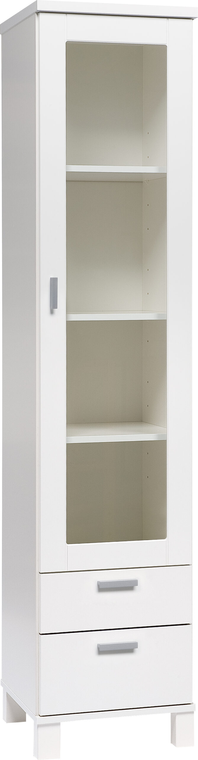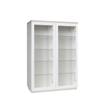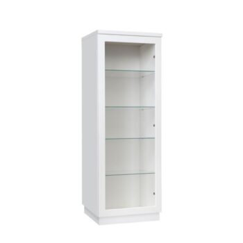 Kotimainen Fondi vitriini on tyylikäs ja sirolinjainen säilytyskaluste, joka yhdistää ajattoman muotoilun ja käytännöllisyyden. Kapea mutta korkea mitoitus tekee siitä erinomaisen valinnan myös pienempiin tiloihin. Vitriinissä on kolme säädettävää hyllyä ja kaksi vetolaatikkoa, jotka tarjoavat monipuolisesti säilytystilaa niin astioille, koriste-esineille kuin muille kodin tarvikkeille. Yksinkertainen ja ajaton muotoilu tekee tästä vitriinistä helpon yhdistää monenlaiseen sisustukseen. Ovi on saatavilla kolmella eri vaihtoehdolla: umpiovi, kirkas lasiovi tai maitolasiovi ja halutessaan vitriinin voi tilata myös ilman ovea. Oven kätisyys on valittavissa asennuksen yhteydessä.