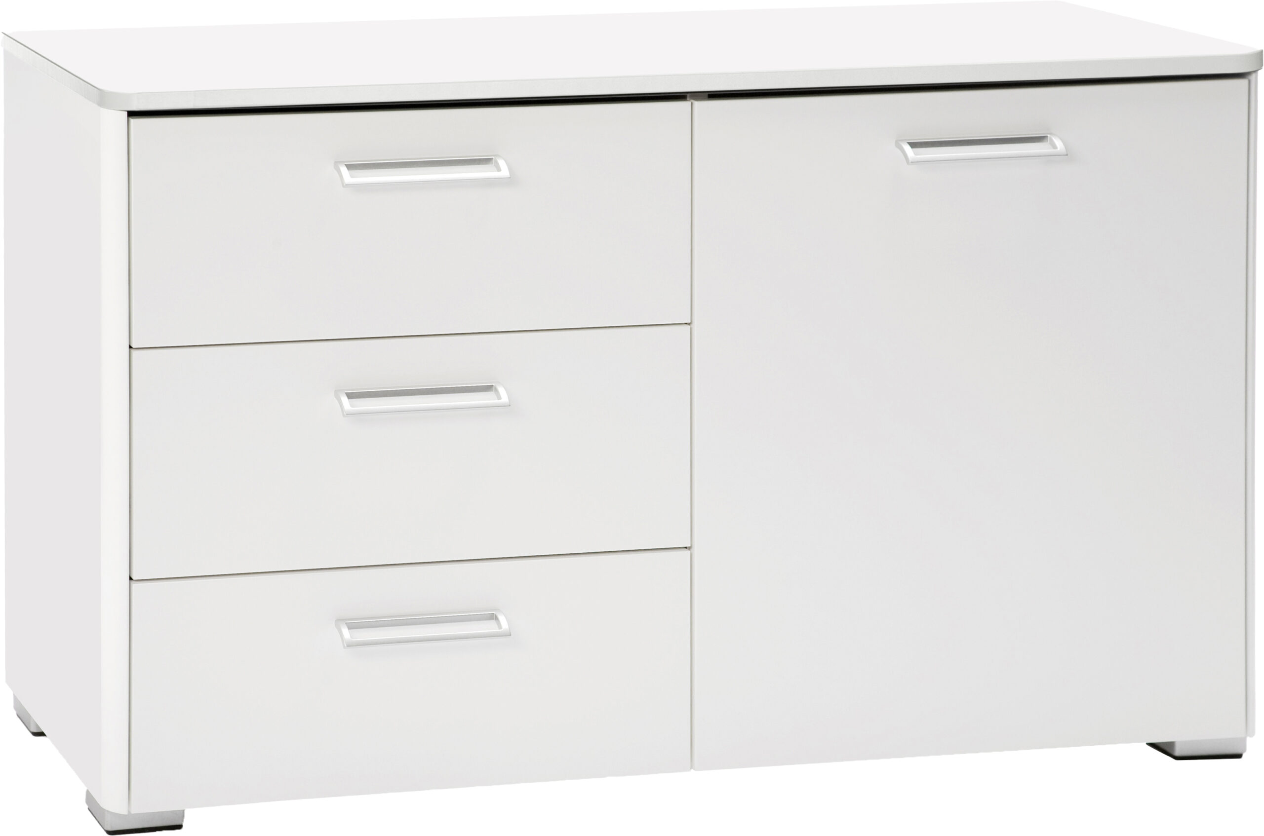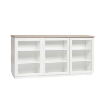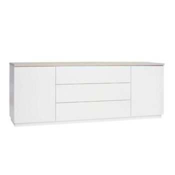Kotimainen Helmi senkki yhdistää käytännöllisyyden ja hillityn tyylikkyyden. Sirokokoisessa kalusteessa on tilava kaappi ja kolme vetolaatikkoa, jotka tarjoavat kätevää säilytystilaa kaikille kodin tarvikkeille. Painavammat esineet sijoittuvat kaappiosaan ja kevyemmät tai pienemmät tavarat laatikoihin. Laatikot liukuvat sulavasti metallikiskoilla ja alumiininväriset vetimet tekevät avaamisesta helppoa. Kokonaan valkoinen viimeistely tuo tilaan klassista kauneutta ja pyöristetyt reunat sekä kannen kulmat viimeistelevät harmonisen, ajattoman ilmeen.