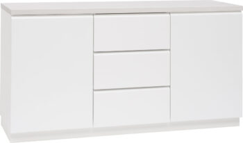 Kotimainen Helmi senkki tuo kotiisi järjestystä ja tyyliä helposti. Senkissä on kaksi kaappia ja kolme tilavaa laatikkoa, jotka tarjoavat runsaasti säilytystilaa niin pienille kuin suuremmillekin tavaroille. Kaappien sisällä on säädettävä hylly, mikä tekee säilytyksestä joustavaa. Kokonaan valkoinen viimeistely tuo tilaan raikkautta ja pyöristetyt reunat sekä kaarevat metallivetimet viimeistelevät harmonisen ja ajattoman ilmeen. Selkeälinjainen muotoilu sopii monenlaisiin sisustuksiin ja huoneisiin, kuten eteiseen, olohuoneeseen tai työtilaan.