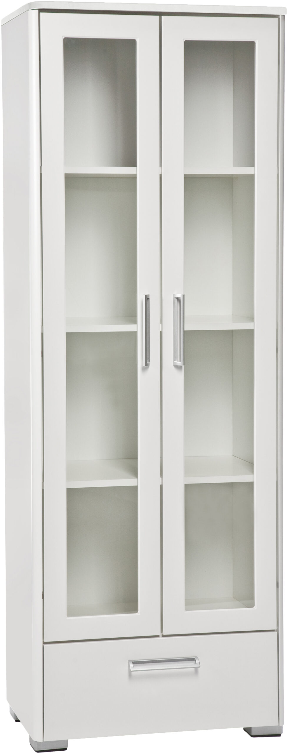 Helmi-sarjan kalusteet ovat suomalaista laatutyötä parhaimmillaan. Jokainen yksityiskohta – pyöristetyt kulmat, huolellisesti viimeistellyt pinnat ja kaarevat alumiinivetimet on suunniteltu kestämään aikaa ja miellyttämään silmää. Vitriinin valkoiseksi maalattu MDF-rakenne on tukeva ja takaa pitkäikäisen käytön.