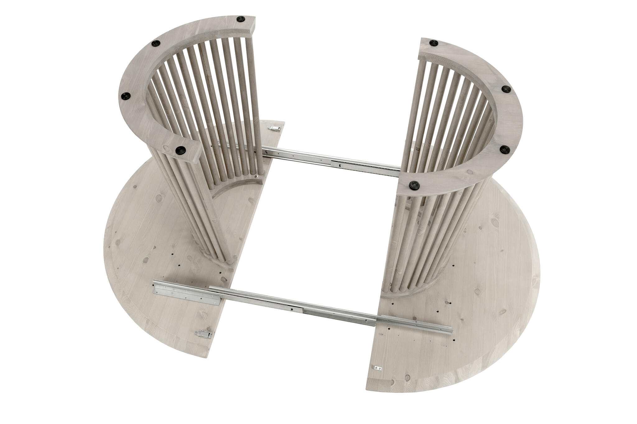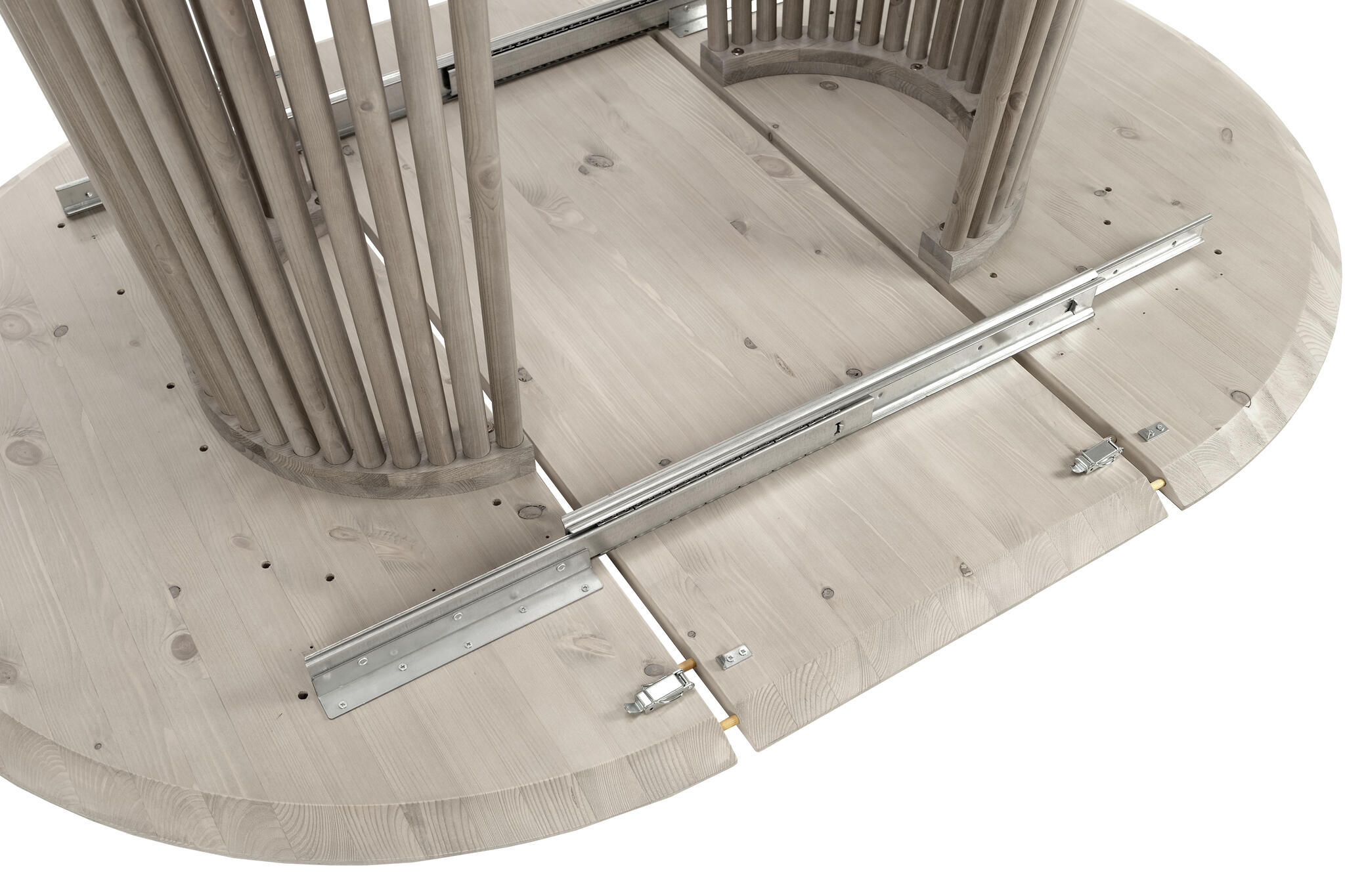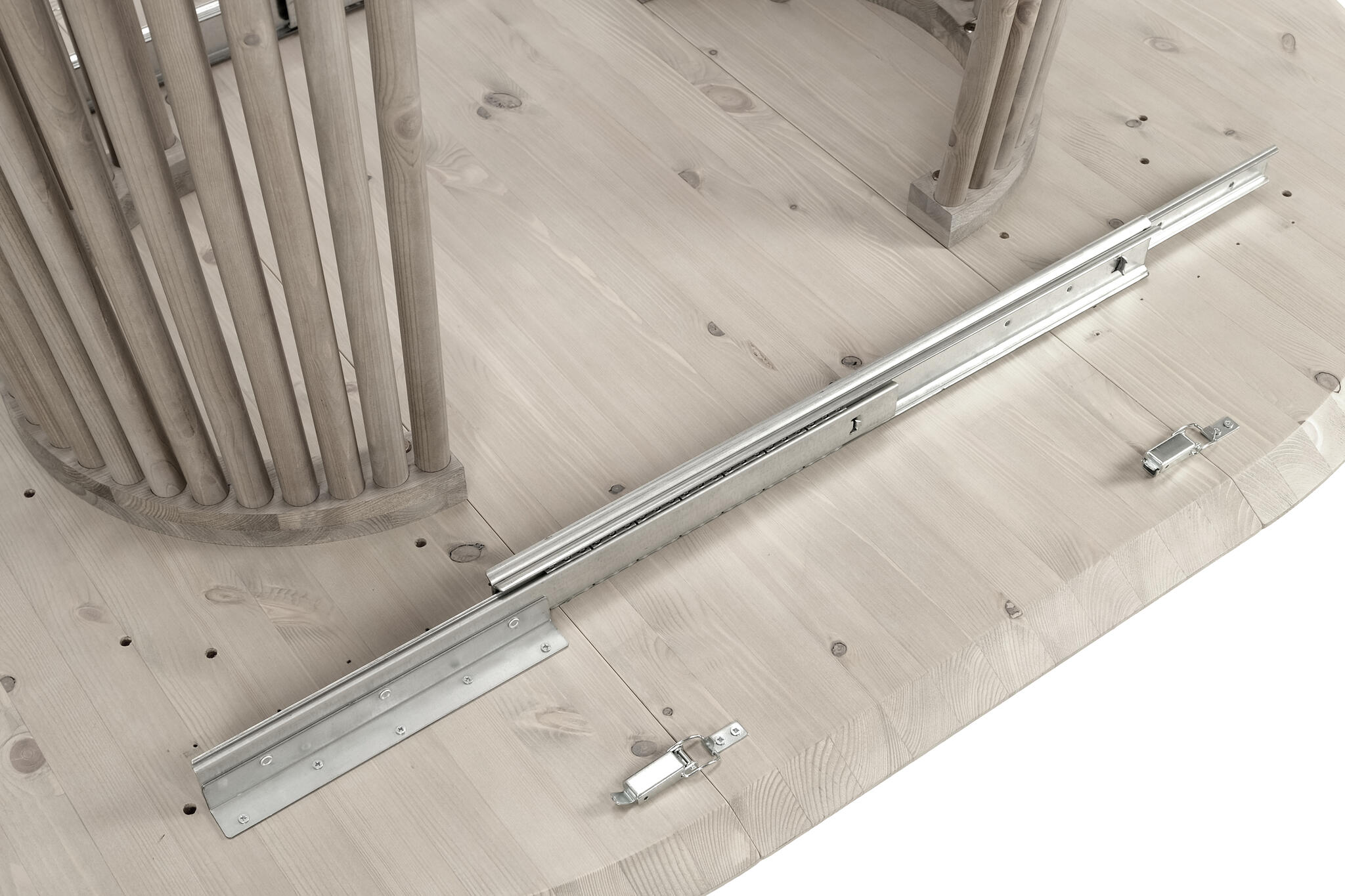 Tuote toimitetaan kahdessa pakkauksessa: kansi ja jalkaosa erikseen. Jalat ovat valmiiksi kasattuina. Jatkopala asetetaan pöydän keskelle, jolloin pöytä laajenee kätevästi isommalle seurueelle.