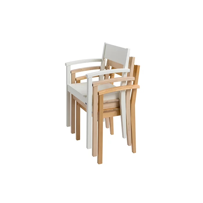Tukeva käsinojallinen Joki tuoli on normaalia korkeampi, jonka voi tarvittaessa pinota pienempään tilaan. Tuoli soveltuu loistavasti ikäihmisille pöydän päähän, tai sängyn viereen.