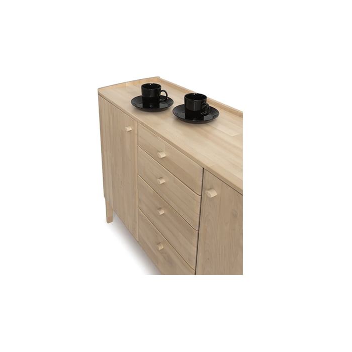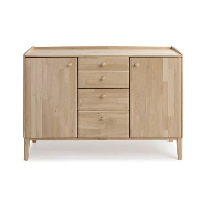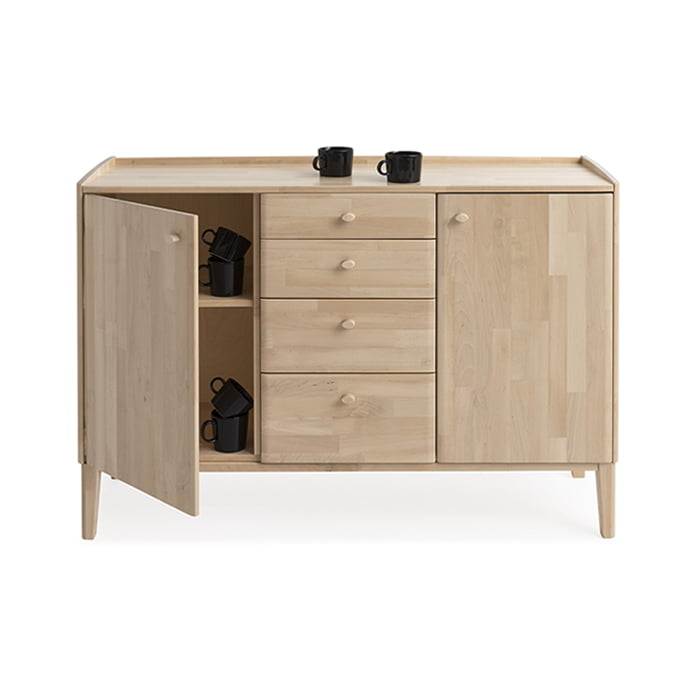 Näyttävä Matinea senkki on usean eri tilan ratkaisu säilytysongelmiin. Upea ulkokuori pitää sisällään paljon monipuolista säilytystilaa ovien sekä laatikoiden takana. Matinea senkki on suunniteltu kestämään aikaa sekä kulutusta, materiaalina luonnollisesti pohjoisten metsien jykevät koivut.