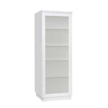 Klaara vitriini tuo sisustukseen perinteisen ilmeen hillityn tyylikkäästi. Selkeälinjainen muotoilu, kauniit viisteet ja messinginväriset nuppivetimet luovat ajattoman kokonaisuuden, joka sopii niin moderniin kuin klassiseenkin kotiin. Kahden lasioven takana on kolme säädettävää hyllyä, jotka tarjoavat runsaasti tilaa astioille, koristeille tai kirjoille. Alhaalla olevat kaksi leveää vetolaatikkoa tuovat lisää säilytystilaa ja tekevät kokonaisuudesta toimivan ja harmonisen. Vitriini on saatavilla myös umpiovilla kaappina tai avohyllynä ilman ovia.