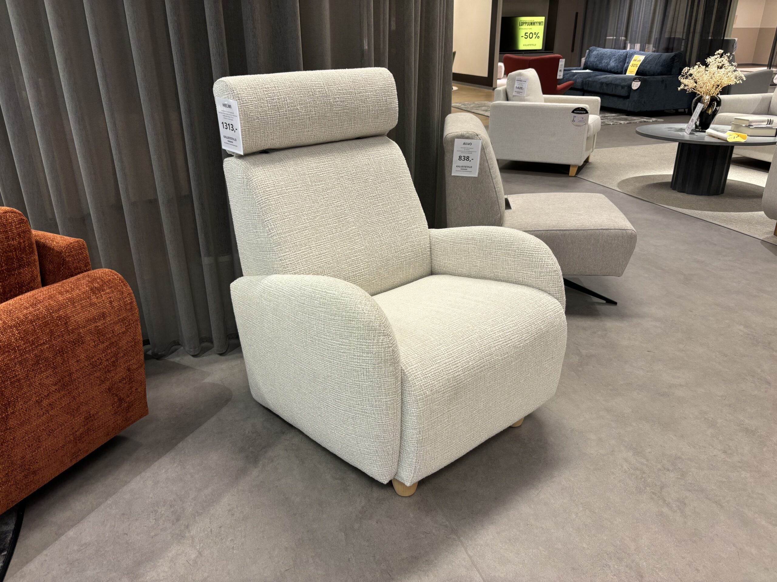 Mallituoli ollut esillä myymälässä ja on uudenveroisessa kunnossa. Mallikalusteilla ei vaihto tai palautusoikeutta, mutta täydet takuut.