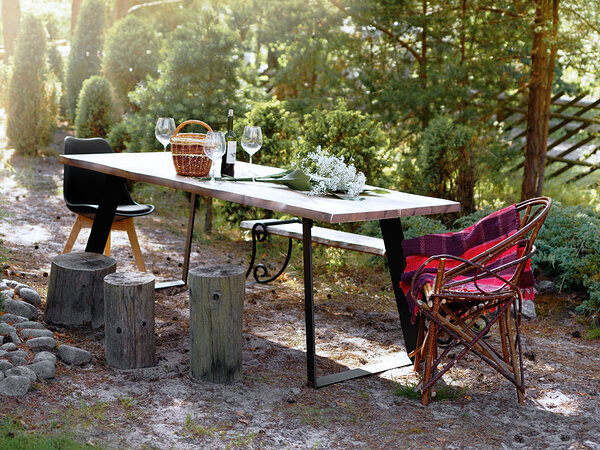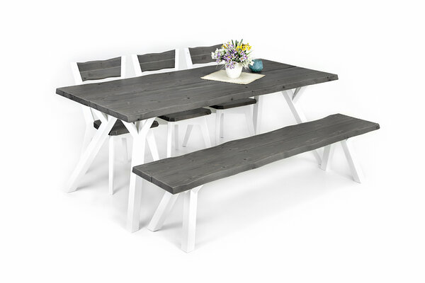 Pöytä on valmistettu kestävästä männystä. Jalkavaihtoehtoina: