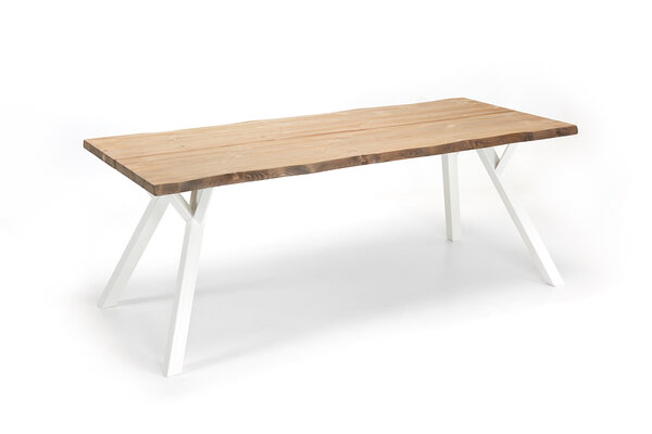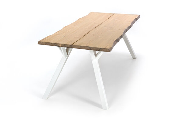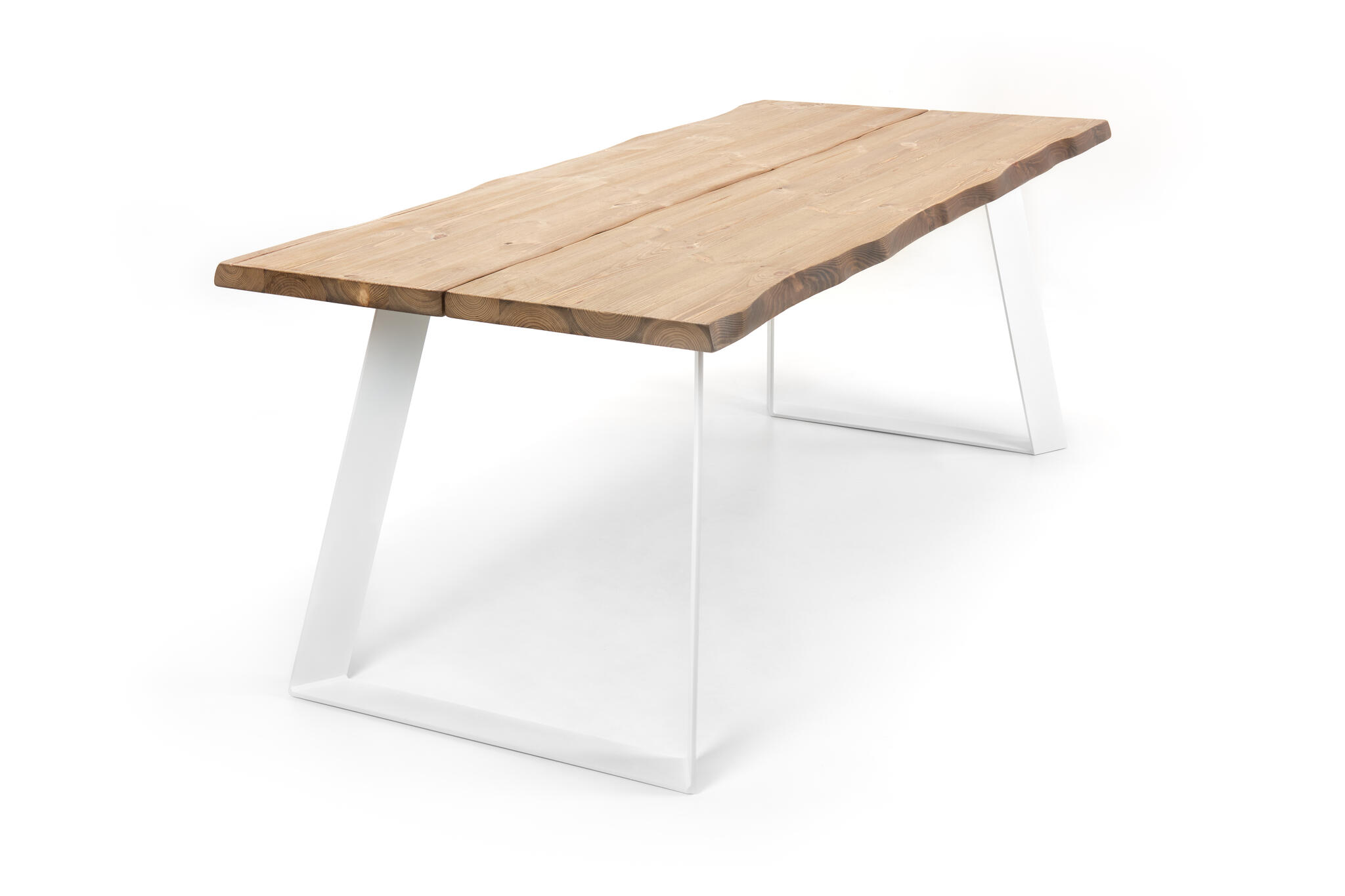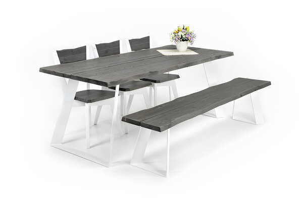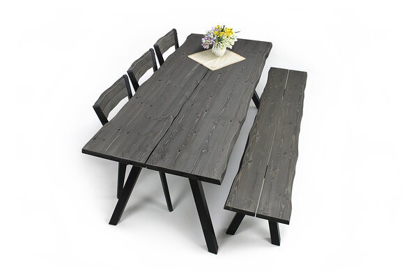 Lana-lankkupöytä yhdistää rouhean rustiikkityylin ja modernin muotoilun elegantilla tavalla. Pöydän kansi valmistetaan kahdesta harjatusta puulankusta, jotka tuovat esiin puun luonnollisen syykuvion ja ainutlaatuisen luonteen. Jokainen pöytä on uniikki – pienet halkeamat, oksankohdat ja kolot ovat osa sen luonnollista viehätystä ja tekevät jokaisesta kappaleesta yksilöllisen.