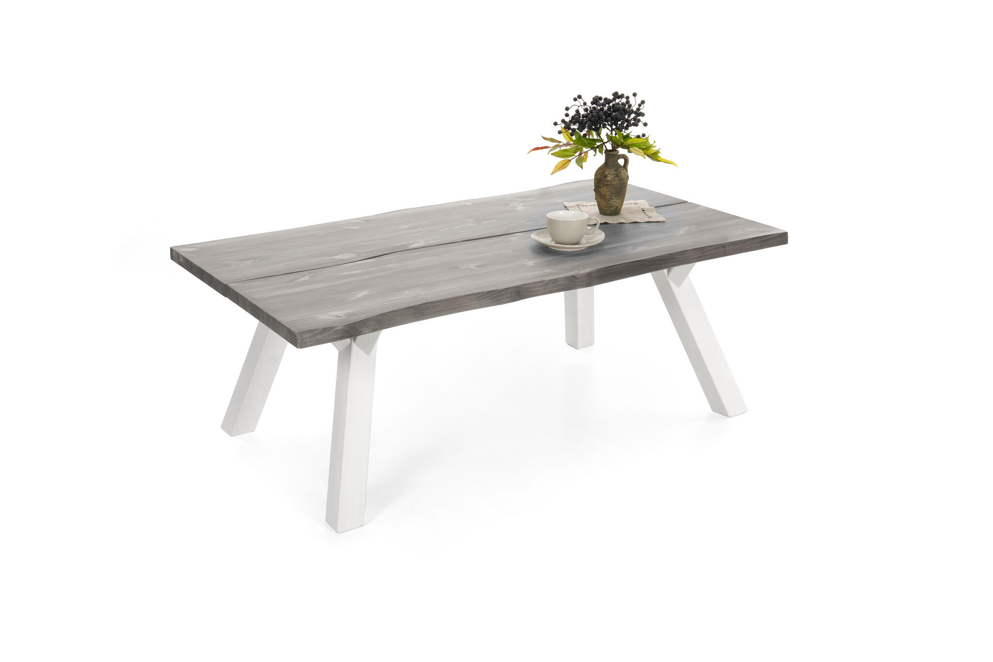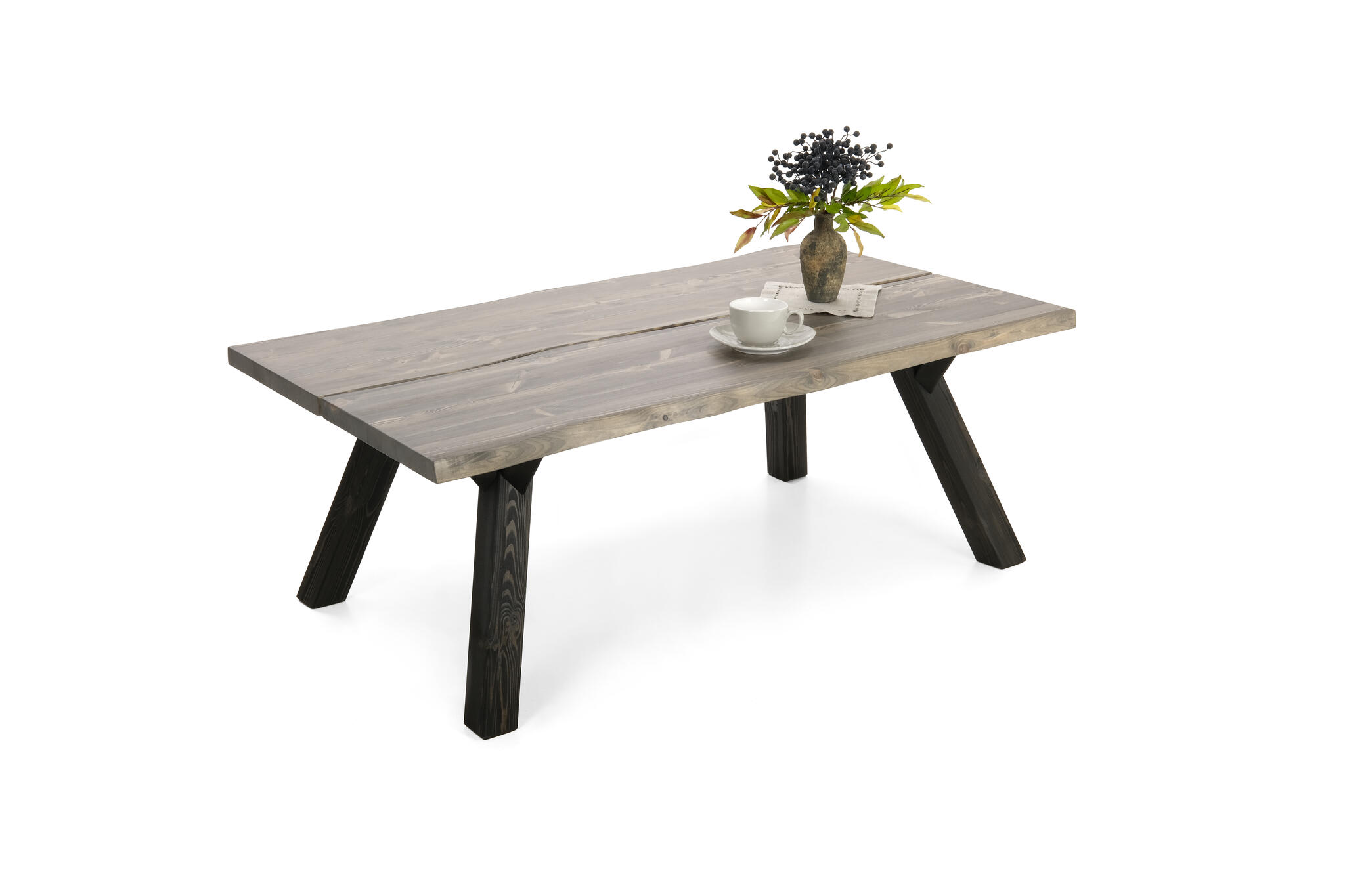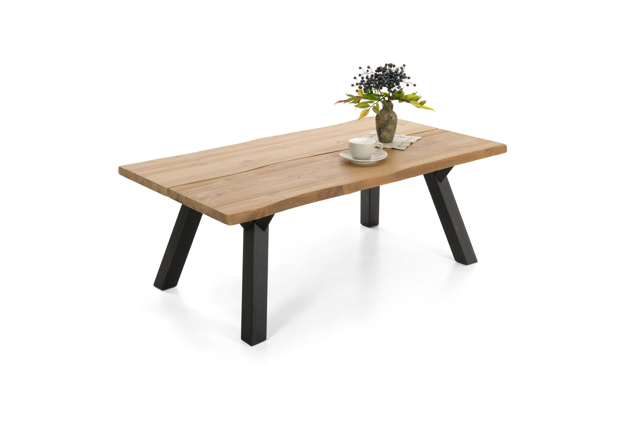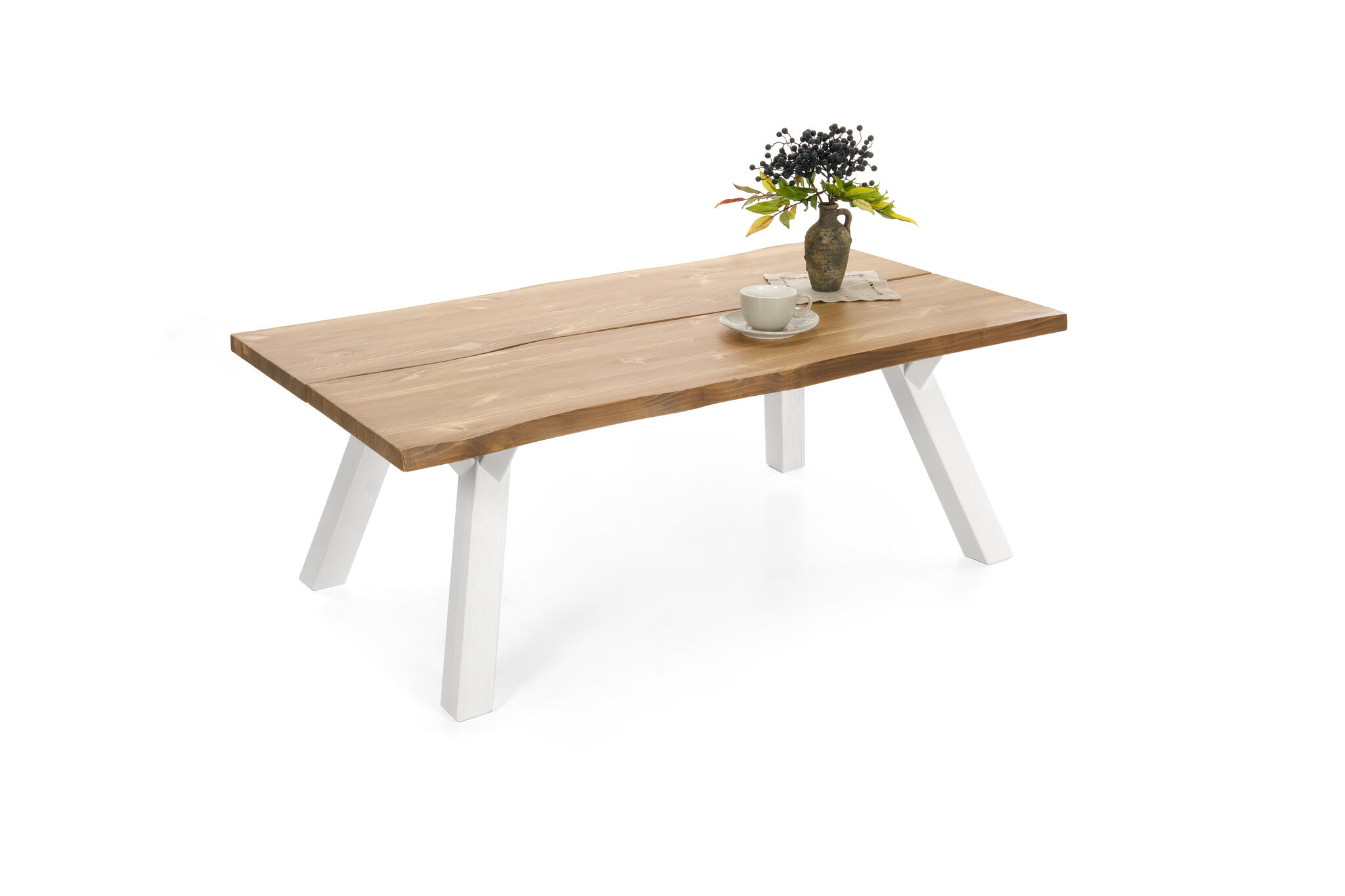 Kaksi lankkua muodostavat jykevän, 4 cm paksun kannen, joka tarjoaa tukevan alustan niin kahvihetkille kuin sisustuselementeille. Rustiikkiset yksityiskohdat, kuten pienet halkeamat, oksankohdat ja kolot, tekevät pöydästä aidosti elävän ja ainutlaatuisen.