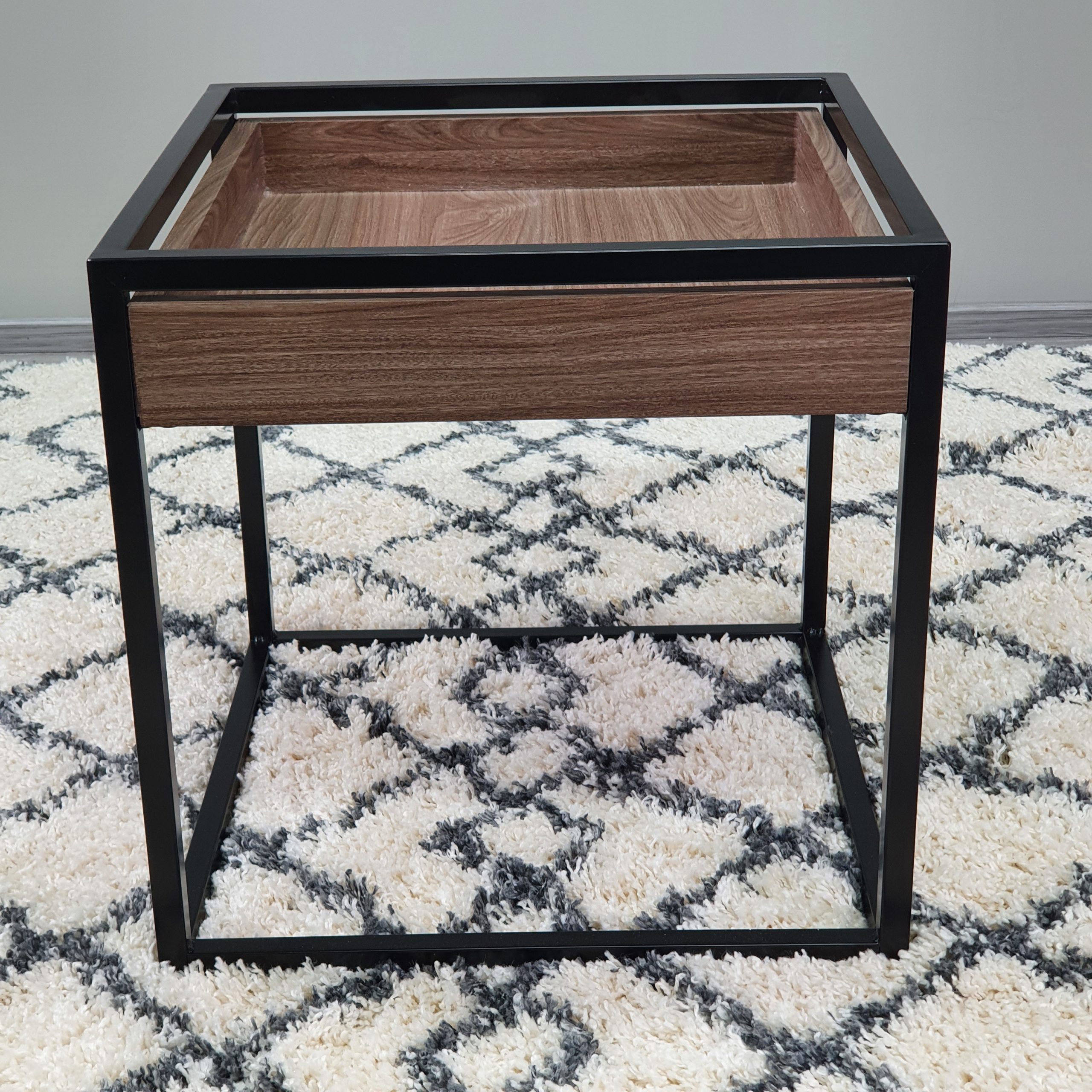 Mustaksi maalattu metallijalka. Mdf-kansi NON-STICK pinnoitteella.