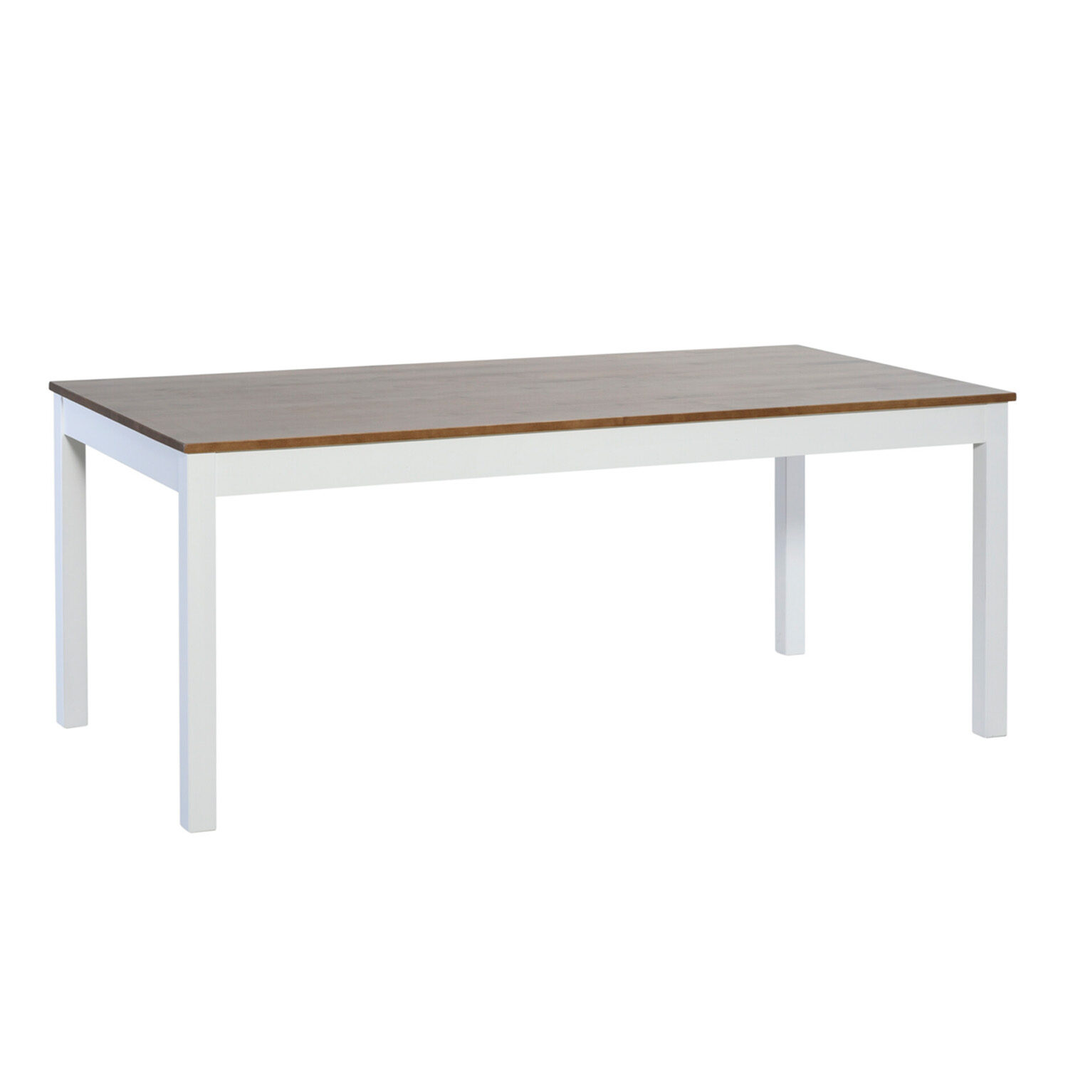 Konstailematon, massiivikoivuinen ruokapöytä kuudelle hengelle. Jalat ja sokkeli maalattua koivua, kansi petsattua koivua. Toimitetaan osina.