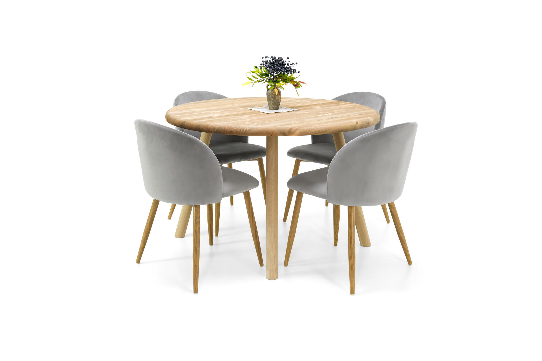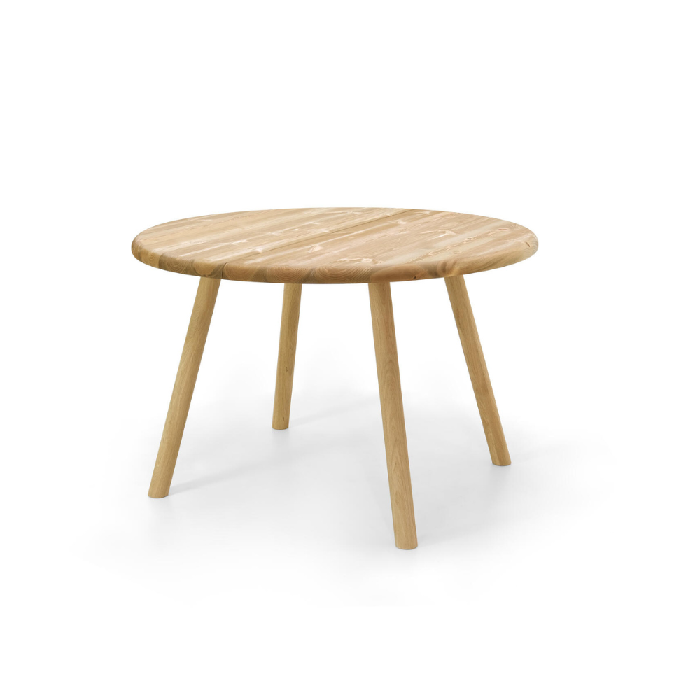Olivia-lankkupöytä yhdistää perinteisen lankkupöydän rouhean rustiikkisuuden ja jykevän rakenteen kevyempään, leikkisään muotokieleen. Pyöristetyt pöydän kannen reunat ja tyylikkäät pyöreät jalat tuovat kokonaisuuteen modernia pehmeyttä ja viimeisteltyä ilmettä.