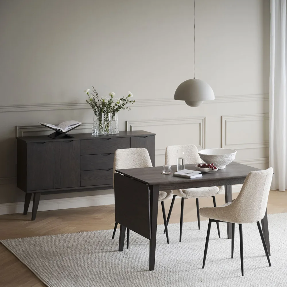 Rowico Filippa pienikokoinen jatkettava ruokapöytä on täydellinen ratkaisu kompakteihin tiloihin, joissa tarvitaan joustavuutta arkeen ja juhlaan. Selkeälinjainen, ajaton muotoilu sopii monenlaiseen sisustukseen, ja lämmin öljytty tammen sävy korostaa puun luonnollista kauneutta.