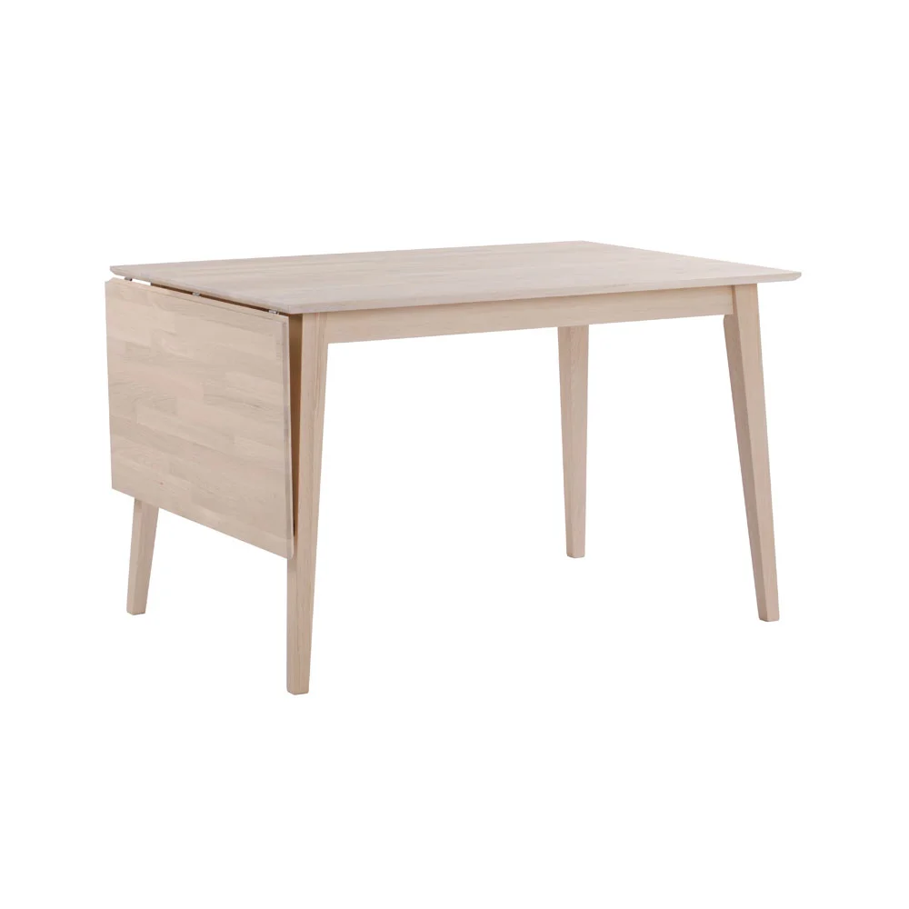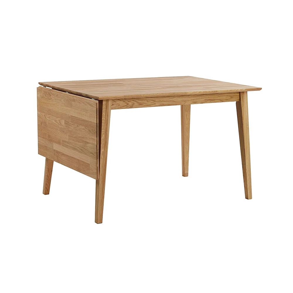 Pöytä on valmistettu massiivisesta sormijatketusta tammesta ja värivaihtoehtoja ovat luonnollinen öljytty tammi, valkopesty tammi sekä lakkapintainen ruskea tammi. Pöydässä on kätevä alas taitettava jatkolevy. Kun levy on käytössä, pöydän maksimipituus kasvaa 165 senttimetriin, jolloin pöydän ääreen mahtuu enemmän ruokailijoita. Kompaktina se toimii erinomaisesti pienessä keittiössä tai ruokailutilassa.