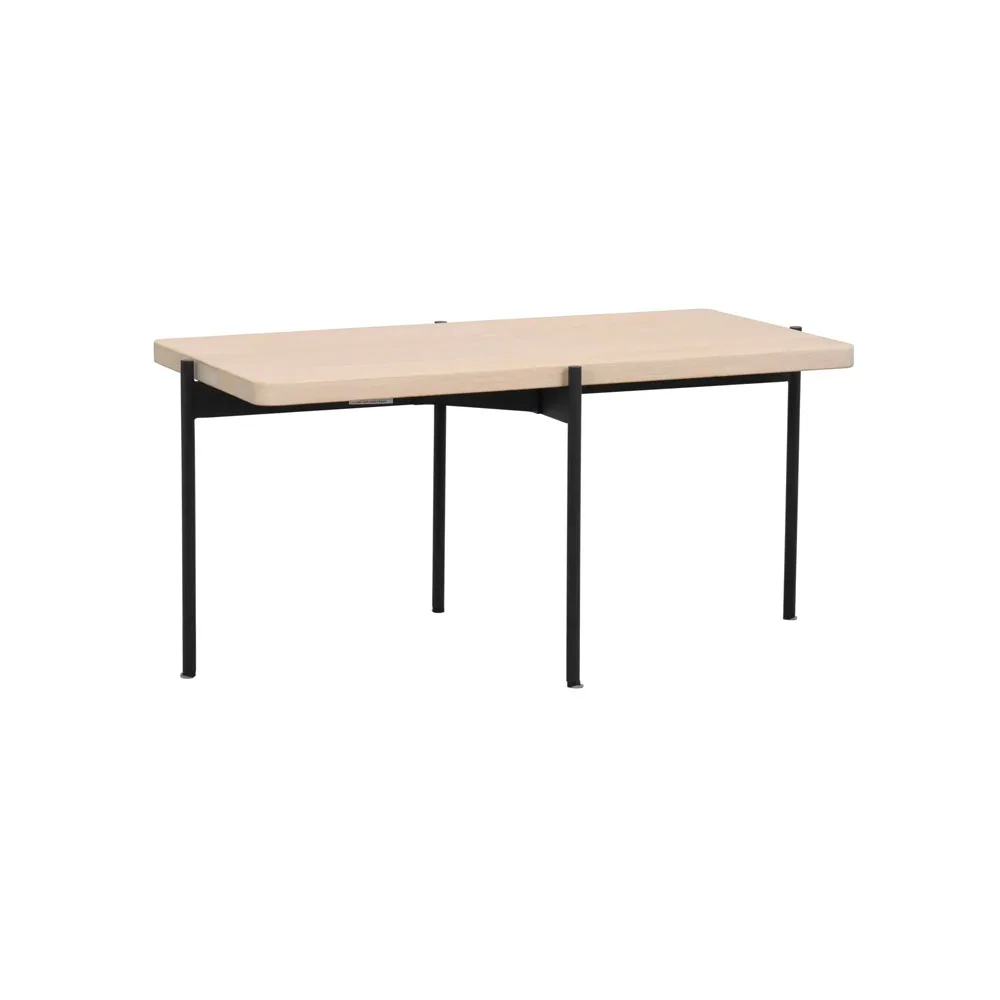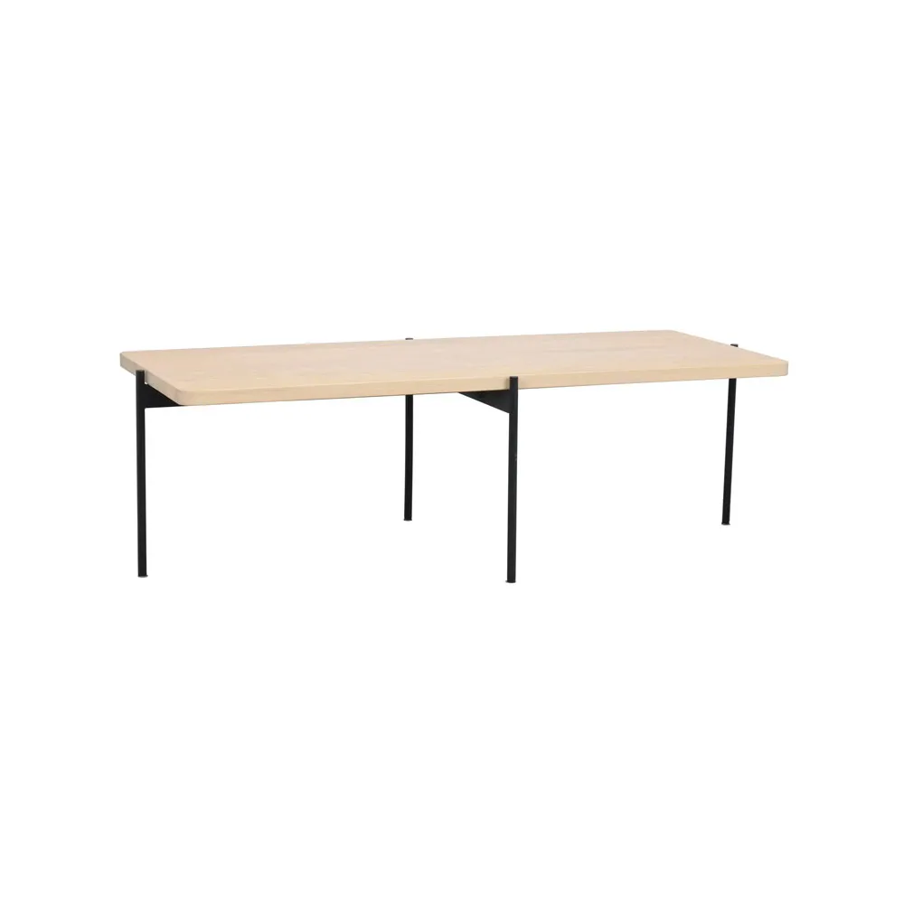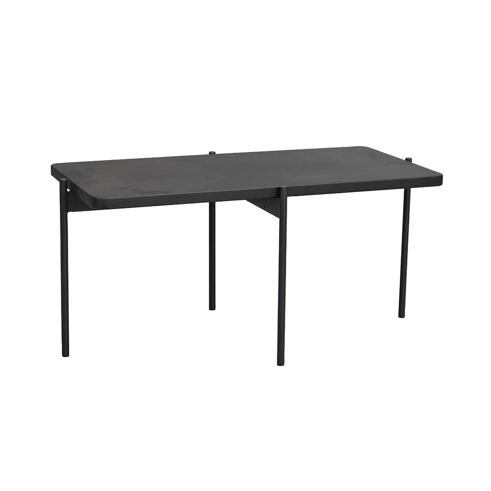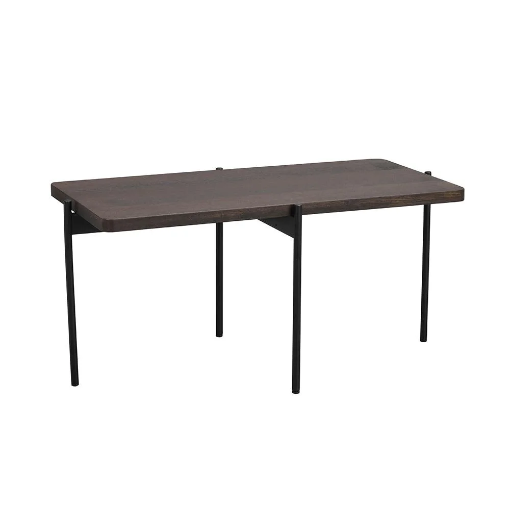 Sohvapöydän kansi on 100 % FSC-sertifioitua massiivipuuta ja pöydän jalat ovat mustaksi maalattua metallia.