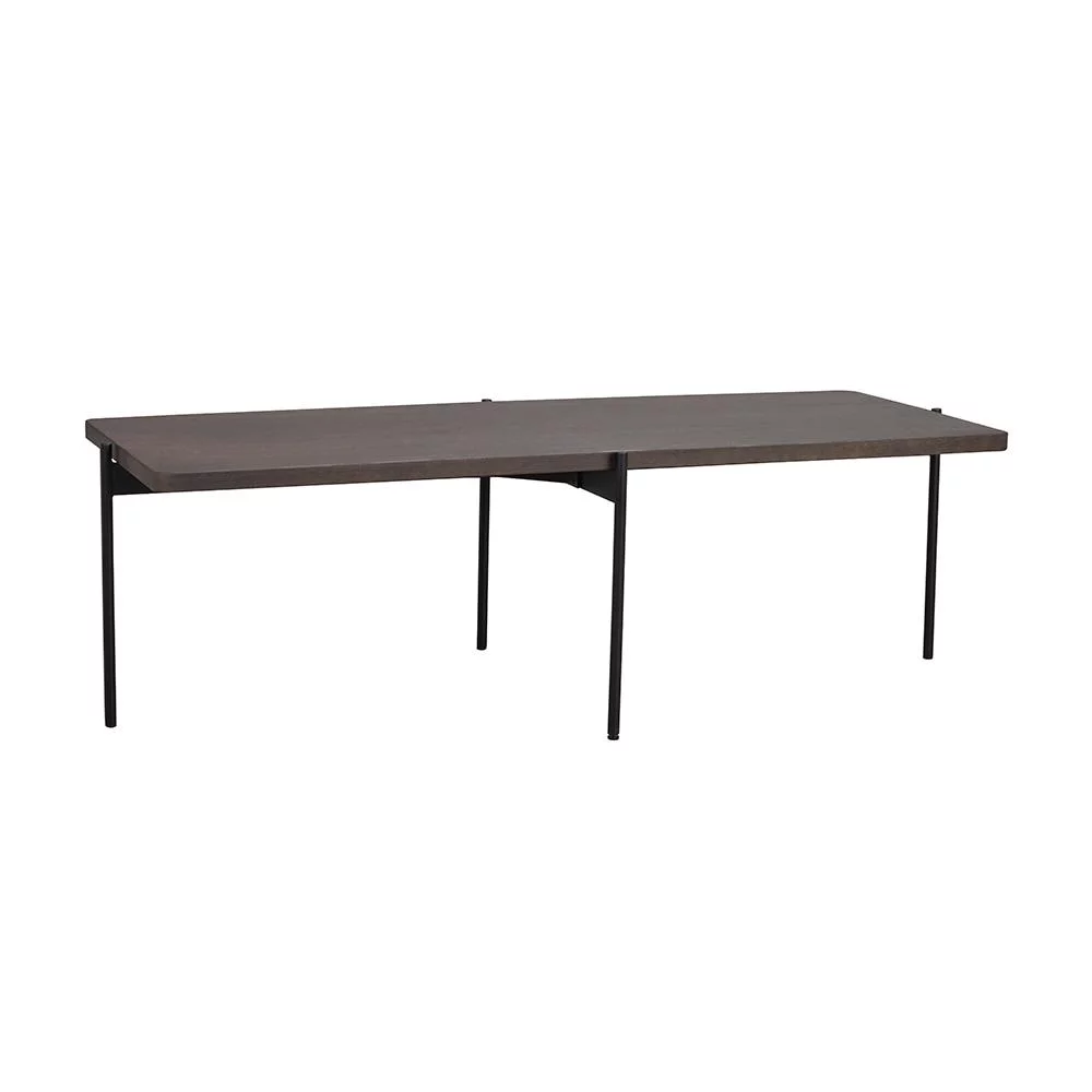 Rowico Shelton-sohvapöytä on tyylikäs ja moderni sohvapöytä, jossa tukeva massiivipuinen pöytälevy yhdistyy siroihin metallijalkoihin. Tilavalle sohvapöydälle mahtuu hyvin laskemaan kahvikupin ja lehden.