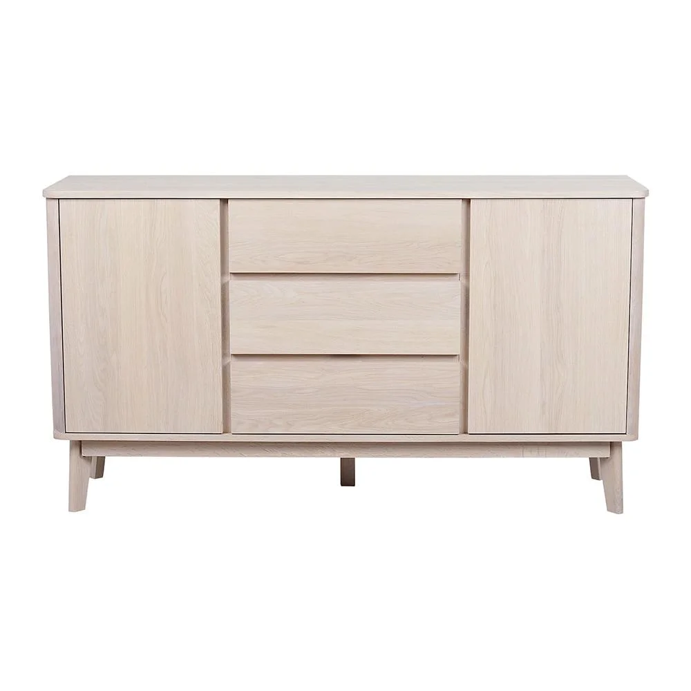 Tyylikäs senkki, jossa yhdistyvät parhaimmillaan pohjoismainen retrodesign ja käytännöllinen säilytystila. Selkeälinjainen muotoilu, pyöristetyt yksityiskohdat ja valkopesty tammiviimeistely luovat lämpimän, ajattoman ilmeen, joka sopii niin moderniin kuin klassiseenkin sisustukseen.