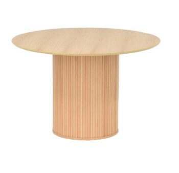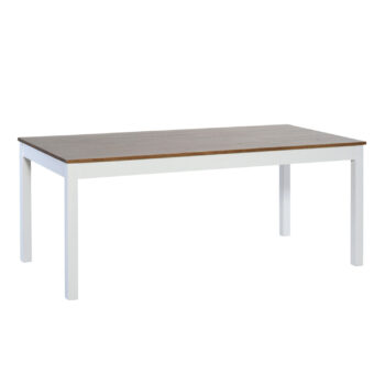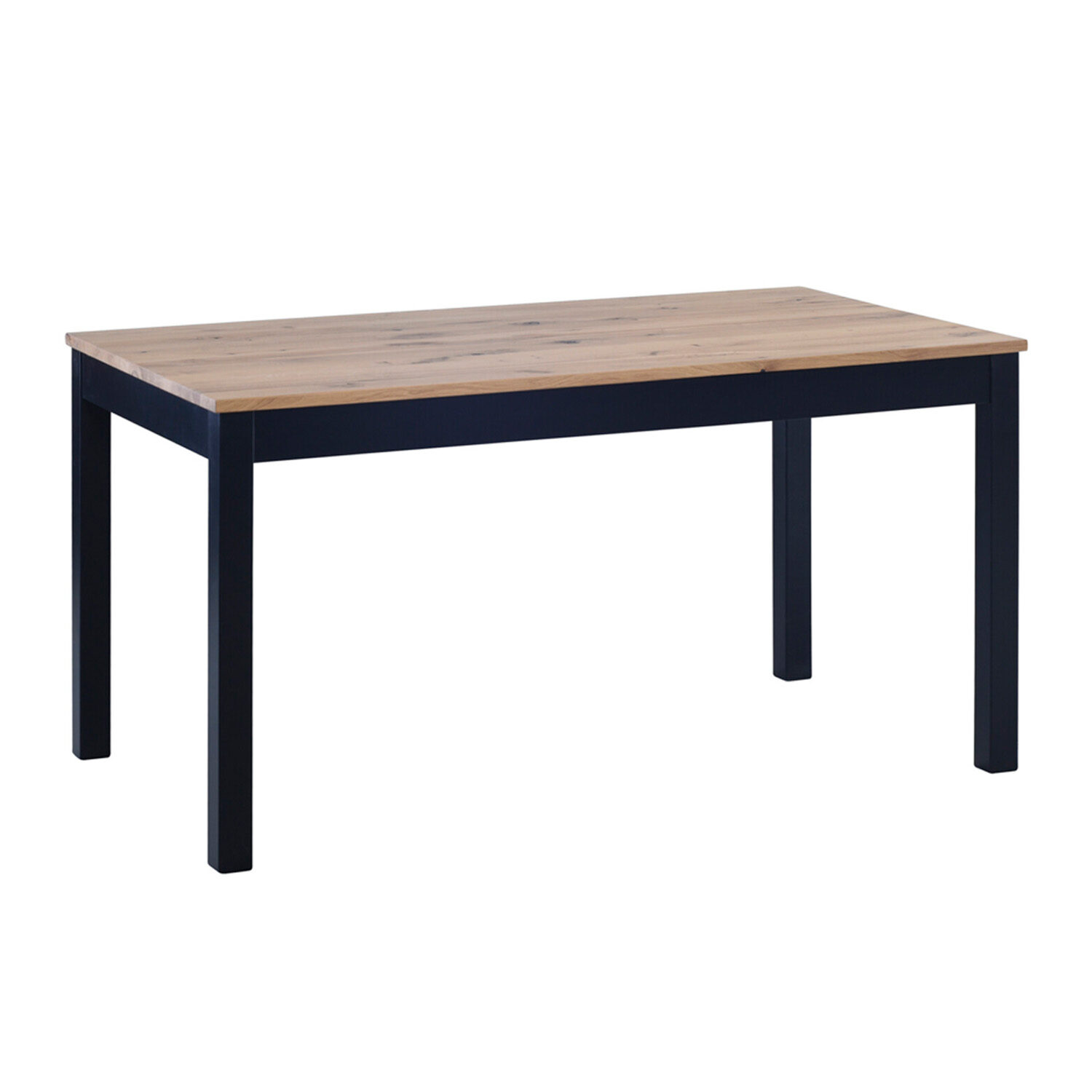 Näyttävä ruokapöytä, jonka rustiikkinen kansi on aina yksilöllinen. Jalat ja sokkeli maalattua koivua, kansi tammea. Toimitetaan osina.