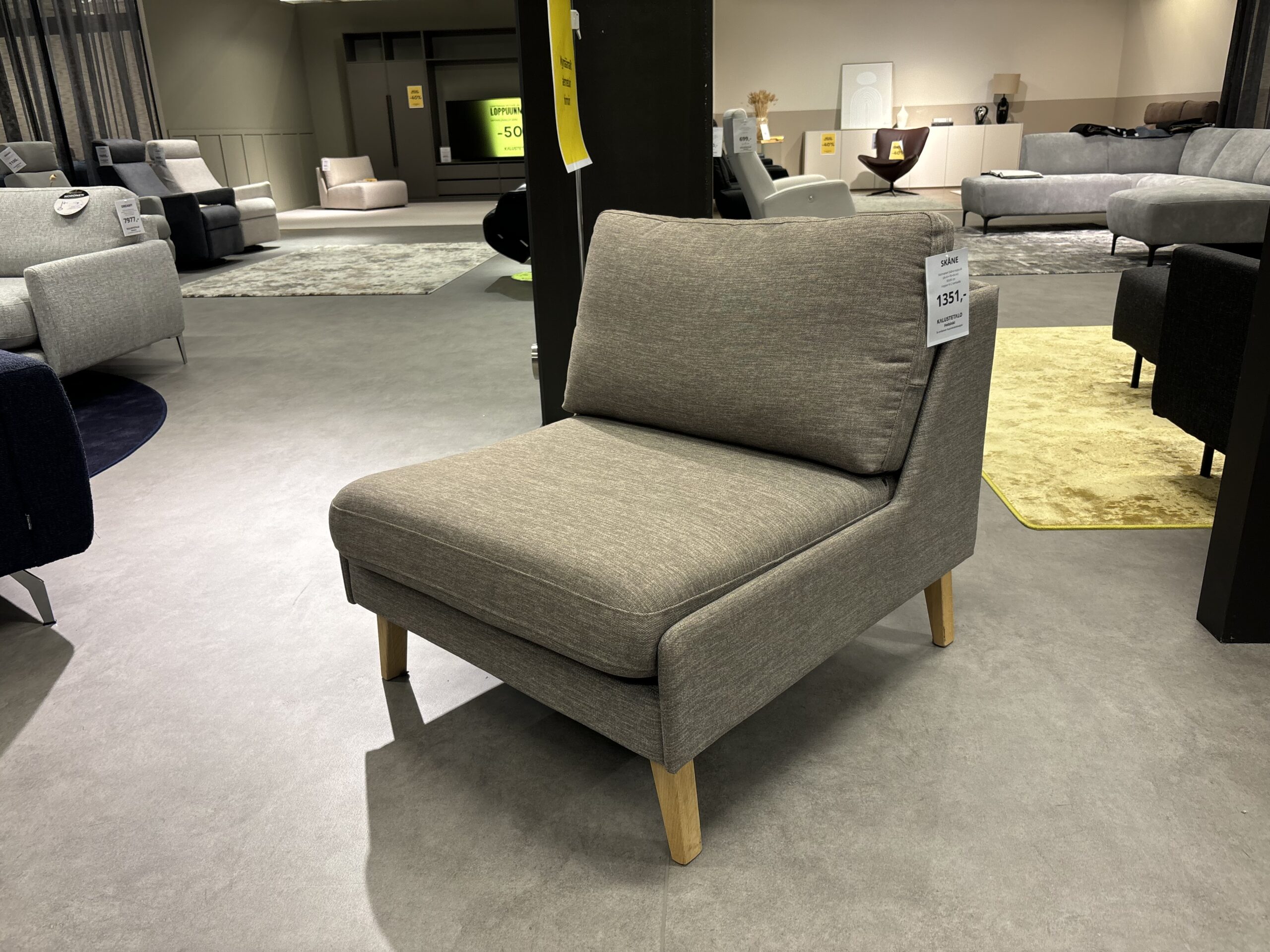 Kotimainen Skåne nojatuoli verhoiltuna Hopper kankaalla.