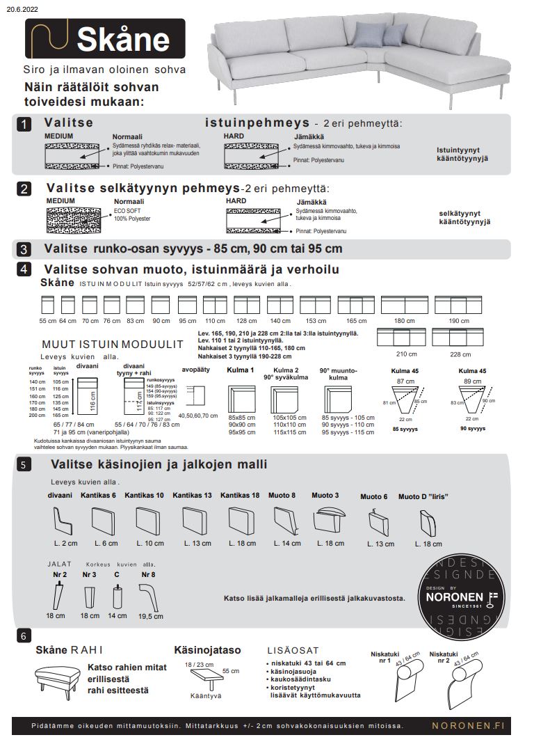 Kotimainen Skåne mittatilaussohva on moderni ja raikas. Korkea jalka tekee siitä kevyen ja ilmavan.