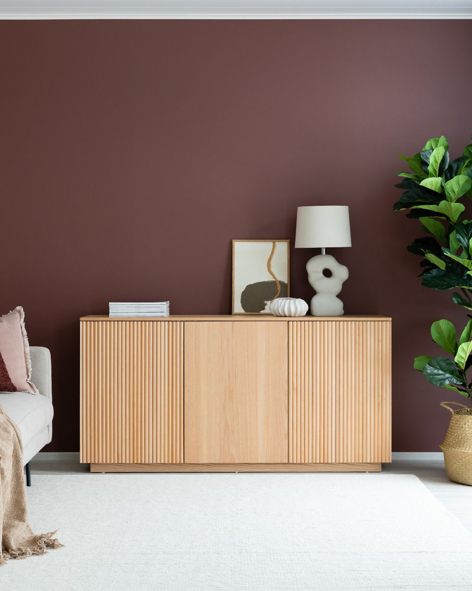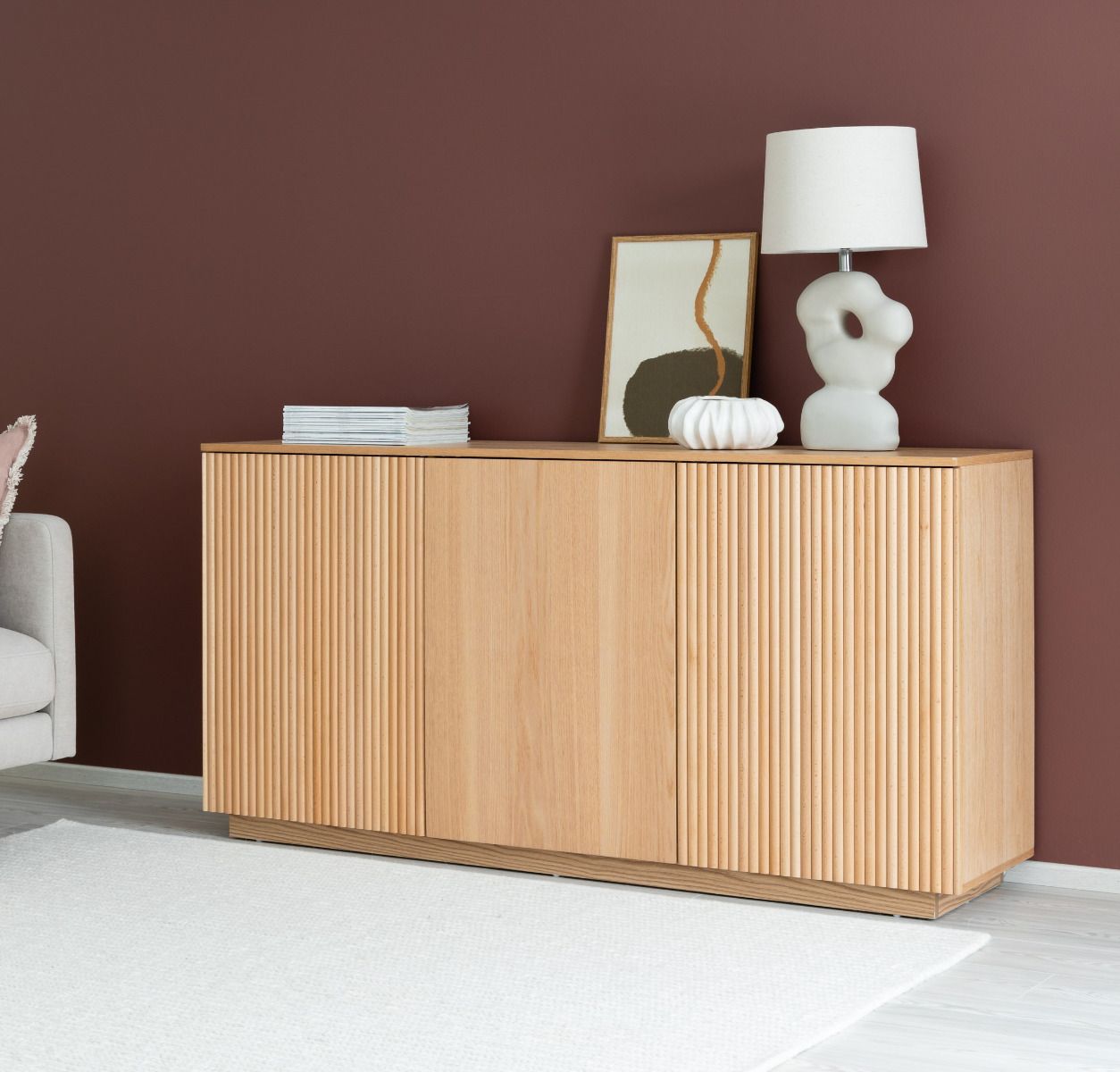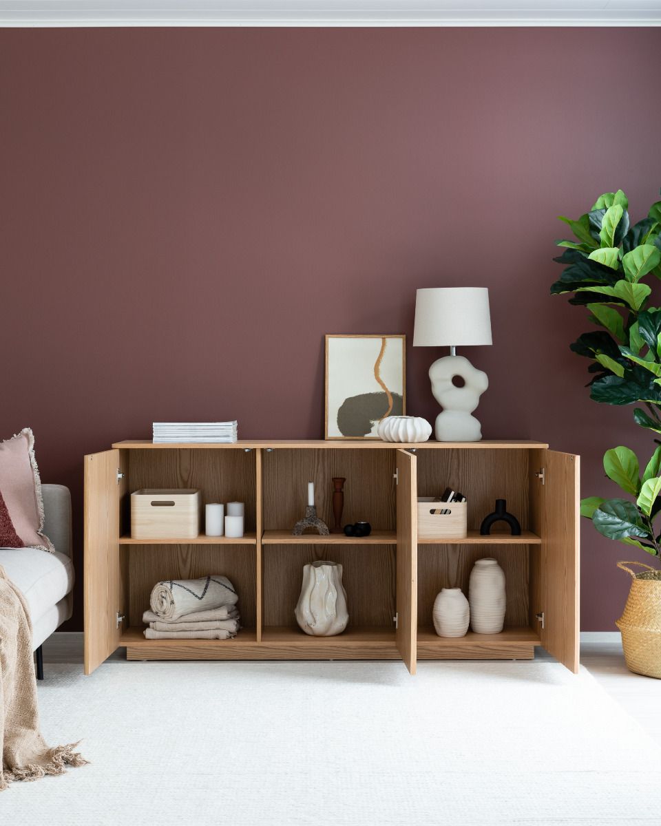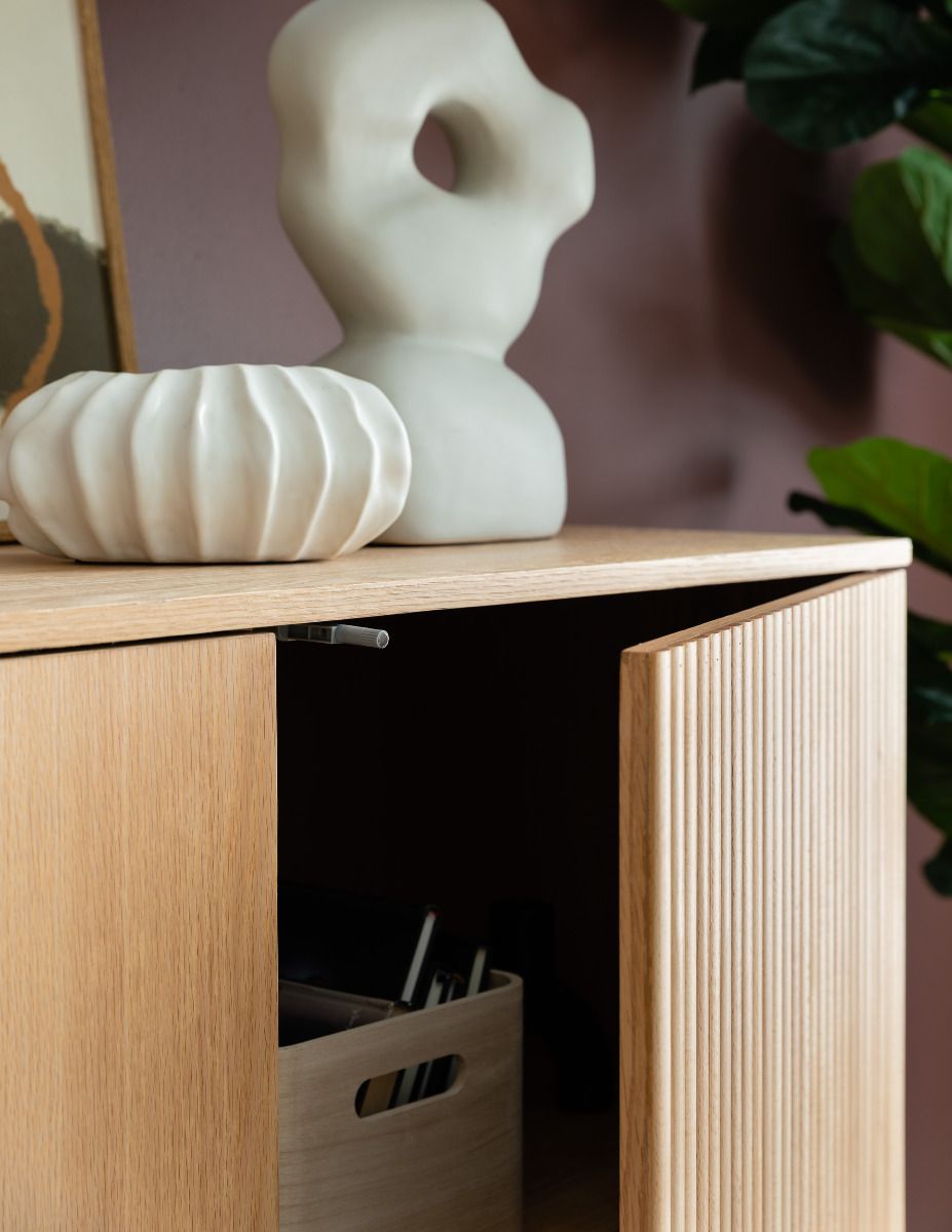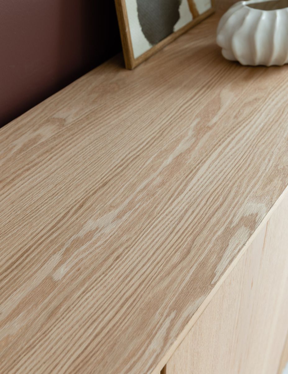 Upea, luonnonvärinen Verso-senkki, josta löytyy runsaasti säilytystilaa. Senkissä on kolme tilavaa kaappia, joiden sisällä on välihyllyt